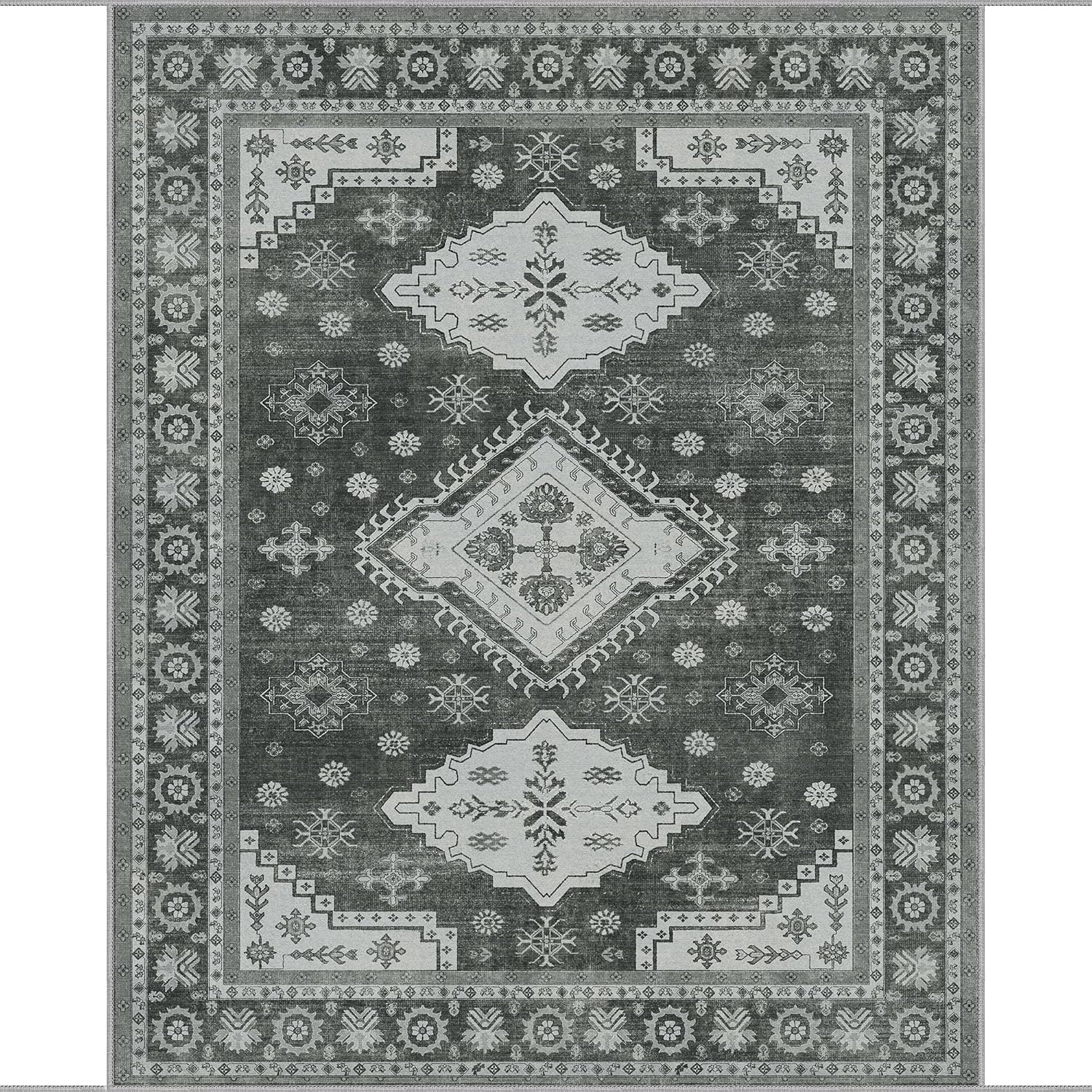 GENIMO Washable Rug 8X10 Area Rugs for Living Room Bedroom, Machine Washable Area Rug, Print Vintage Tribal Aesthetic Carpet, Low Pile Mat with Non Slip Rubber Backing, Distressed Charcoal