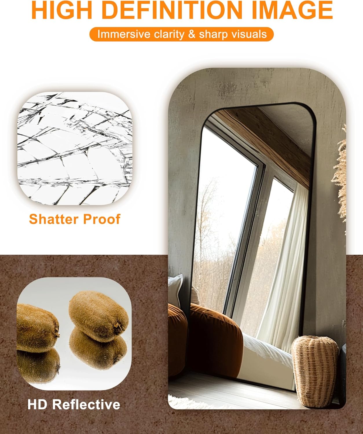 - HD REFLECTION & EXPLOSION PROOF: This wall mirror is made of HD float glass, better reflection, more durable. And floor mirror has an explosion proof design on the back to prevent splinters and make the mirror safer.