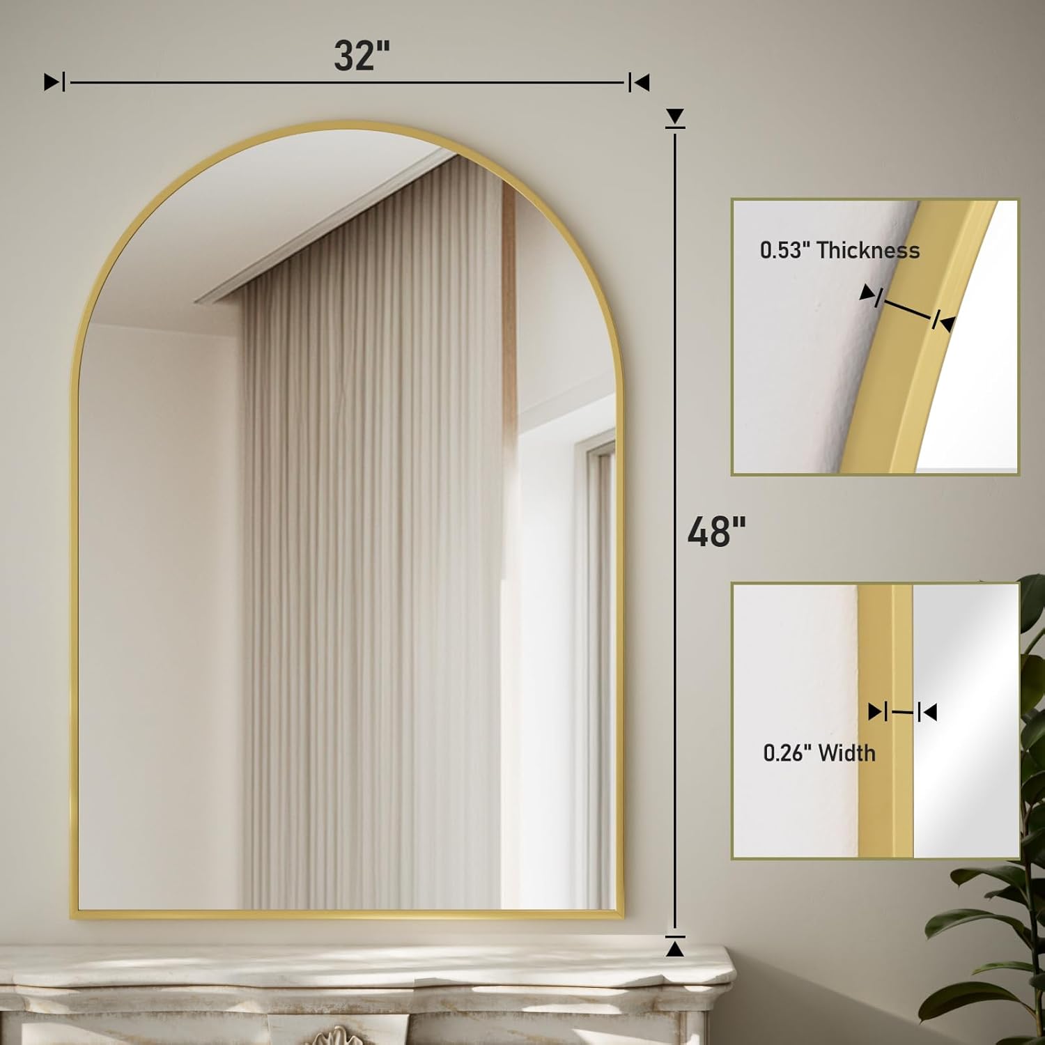 HARRITPURE 32"x48" Arched Bathroom Mirror - Gold Wall Mounted Vanity Mirror Aluminum Alloy Frame Large Arch Wall Mirror for Living Room, Bedroom and Entryway