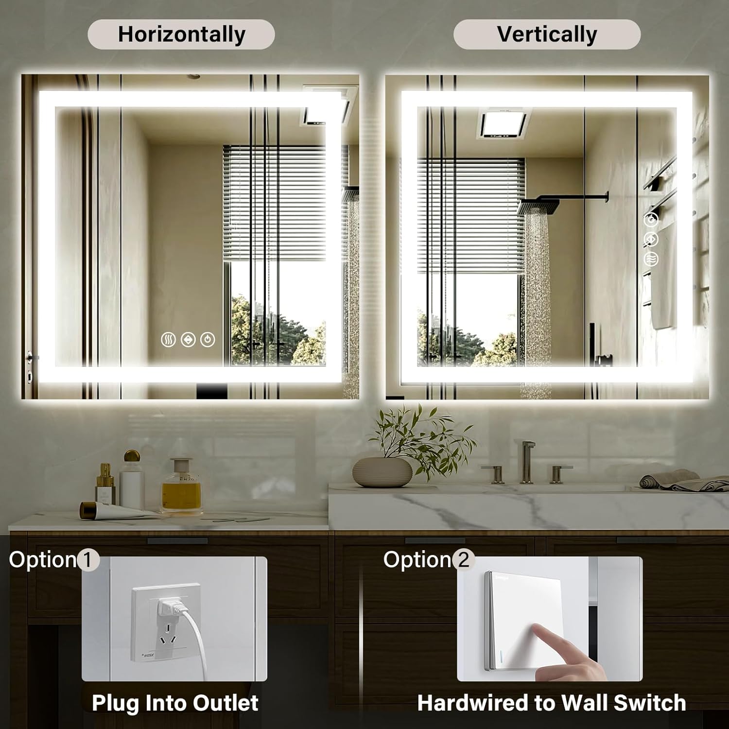 - Anti-Fog Function for Crystal-Clear Vision : Equipped with an advanced anti-fog function, this vanity mirror ensures a clear reflection even after a hot shower, making it perfect for bathrooms and high-humidity environments