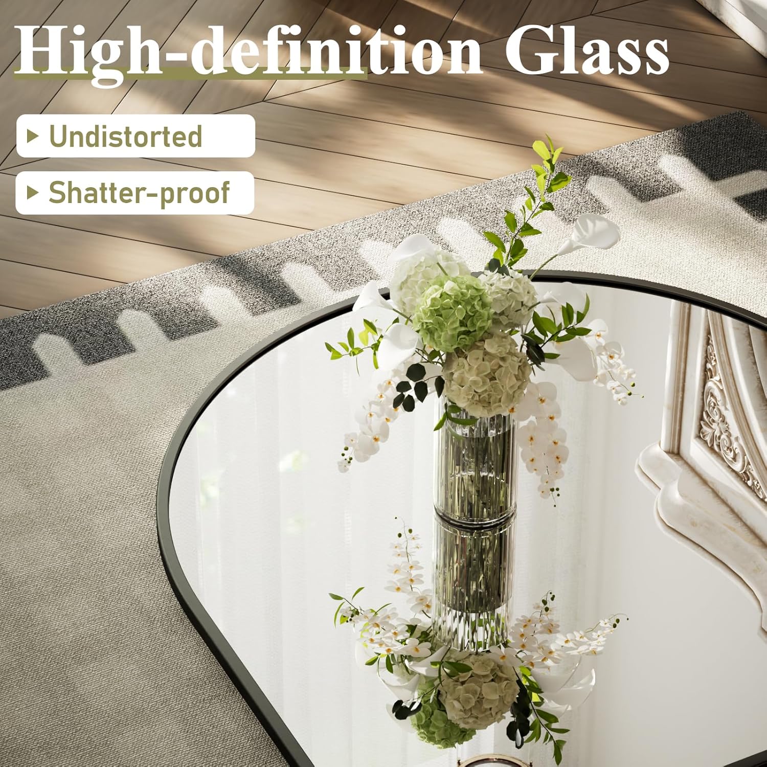 - HD Explosion-proof Glass : The arched bathroom mirror is made of premium explosion-proof glass so that it's safer for you and your family, which also features with HD clear image and natural undistorted reflection