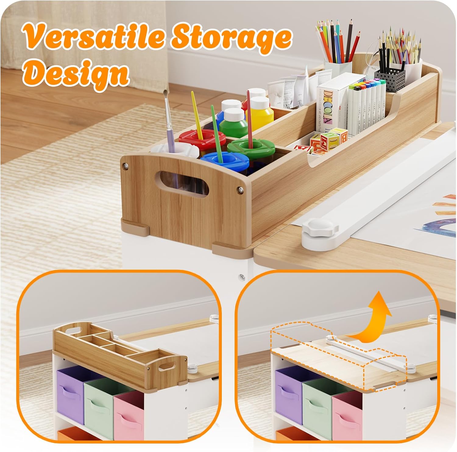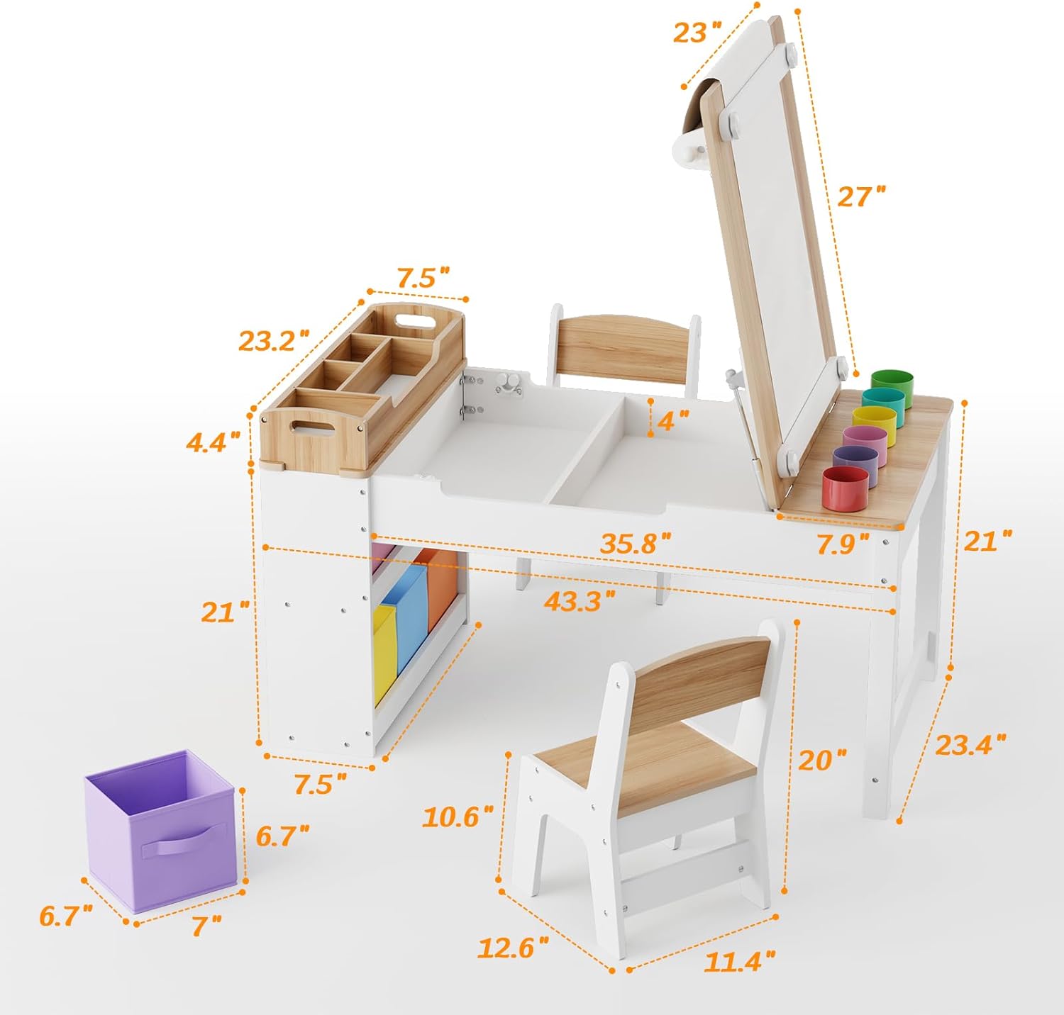 - Versatile Table Set: IKALIFE kids art table and chair set includes an activity table and two chairs, a paper roll, six fabric bins and one removable storage basket, six colorful paint cups. This toddler activity table offers more storage space while also serving as a painting table, desk or game table. Suitable for Ideal for a variety of settings such as children's rooms, playrooms, daycare or classrooms.