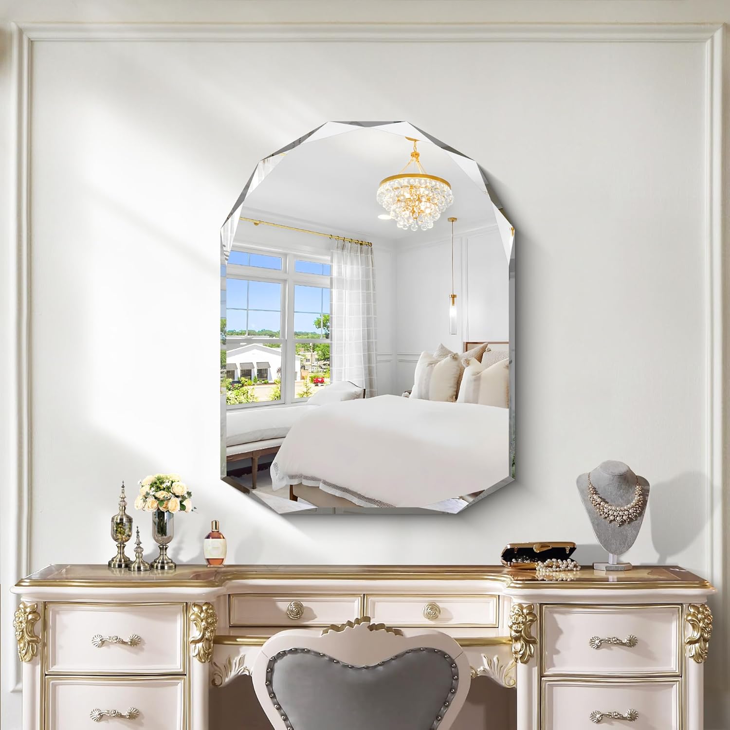 - Elegant Curved Aesthetics: KOCUUY 30x40 inch arched mirror with crystal cut edge,the arched design cleverly combines lines with curves,it can be used anywhere in your home to create a soft and elegant atmosphere in your space and add an artistic touch to your home.