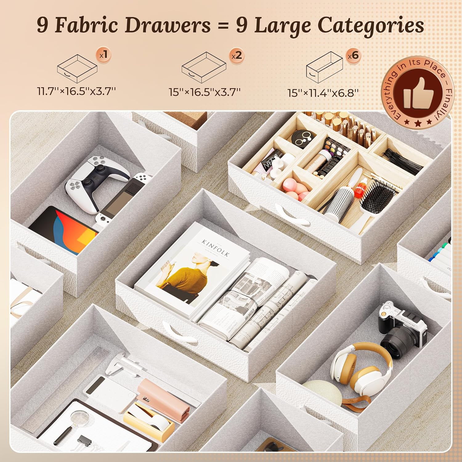 - 【Easy to Assemble】Don’t stress about setup. With a clear manual, included tools, and a smart design, you’ll have this desk for bedroom ready in no time. Each of the 9 fabric drawers takes just 3 simple steps to assemble. Spend less time building and more time enjoying your new workspace