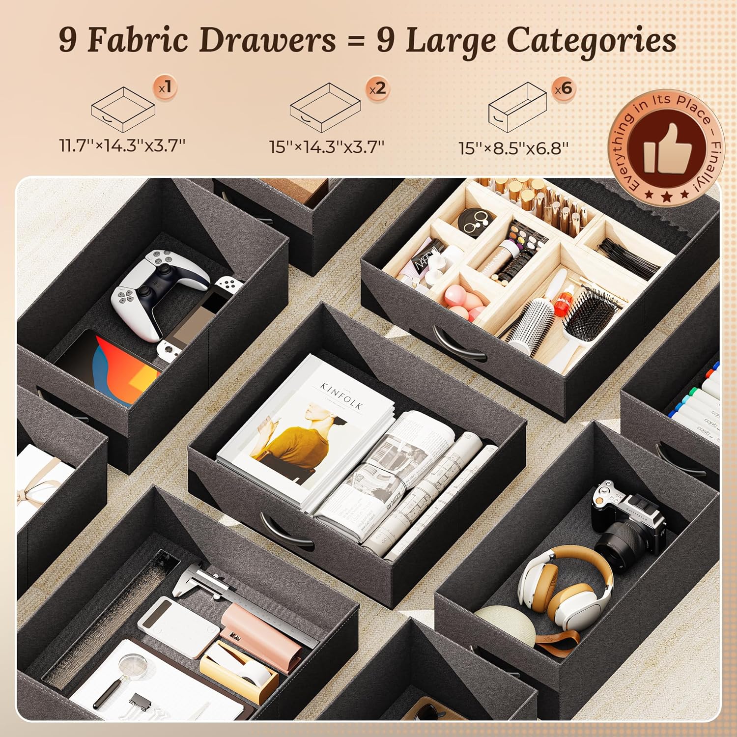 - 【Easy to Assemble】Don’t stress about setup. With a clear manual, included tools, and a smart design, you’ll have this desk for bedroom ready in no time. Each of the 9 fabric drawers takes just 3 simple steps to assemble. Spend less time building and more time enjoying your new workspace