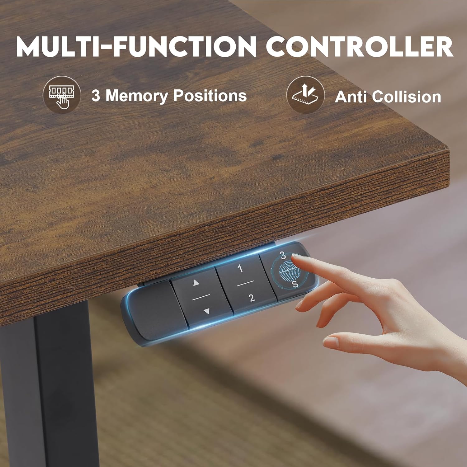 - Multi-Function: The controller holds 3 memory positions for easy height adjustment. Anti-collision function protects desk from colliding into obstacles. LED display clearly shows you the exact height of the desk. Electric desk also can Customize High and Low Limitation Positions.