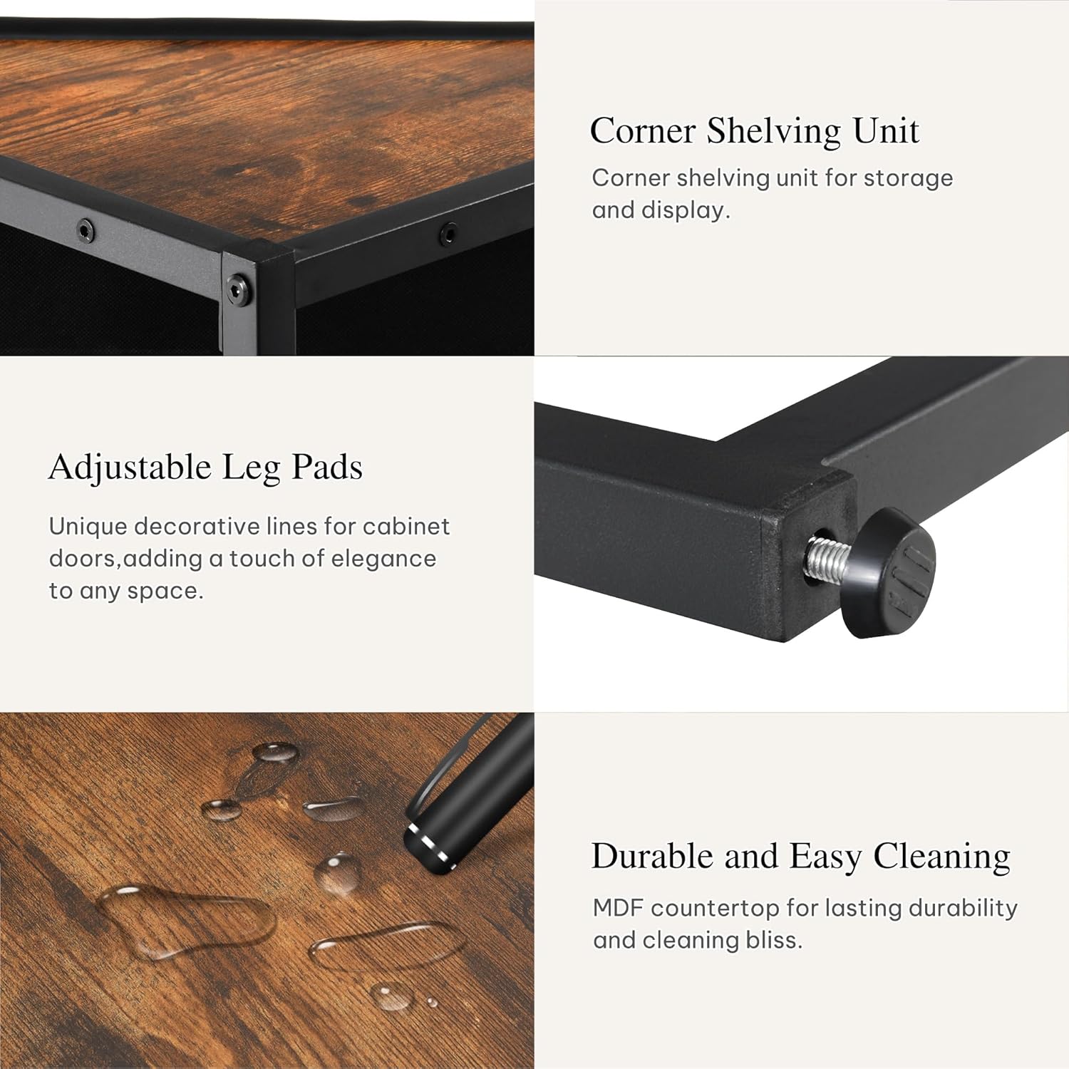 DWVO 3-Piece Dining Table Set for 4-6 People 47.2" Corner Dining Room Table with Left Seat Corner Bench and 43.3" Bench Brown Industrial Kitchen Table for Breakfast Nook Kitchen Living Room Restaurant