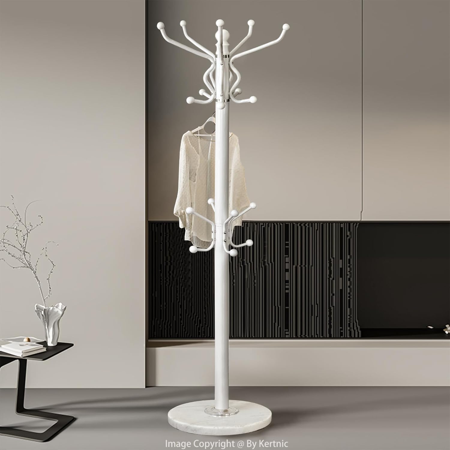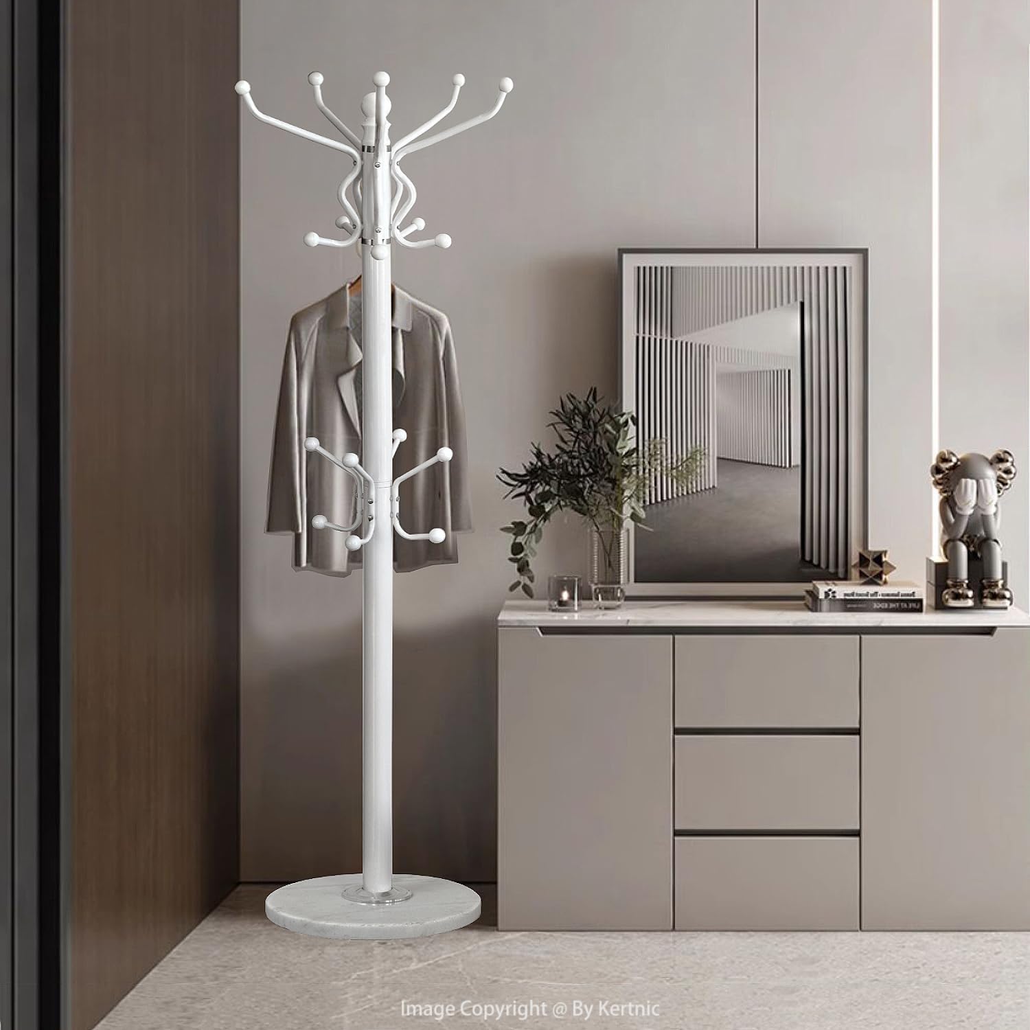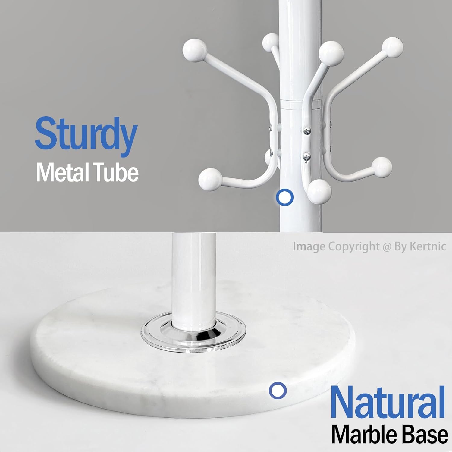 Kertnic Freestanding Coat Rack with 18 Hooks & Marble Base - Heavy Duty Metal Hall Tree Stand for Entryway, Hats, Coats, Bags Rack - Modern Hanger Organizer for Home, Office, Dorm (18 hooks -White)