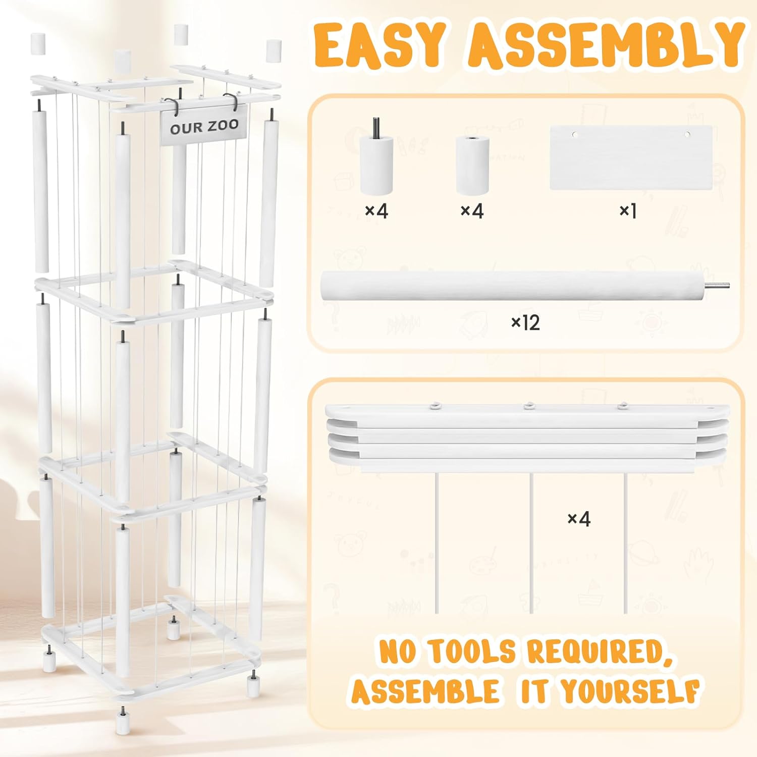 - 【Ample Storage Space】: Once assembled, our organizer measures 15.7 x 15.7 x 53.5 inches, providing enough room to accommodate over 40 stuffed animals. It's perfect for storing large plush toys, ensuring they have a dedicated place and are not scattered around the room