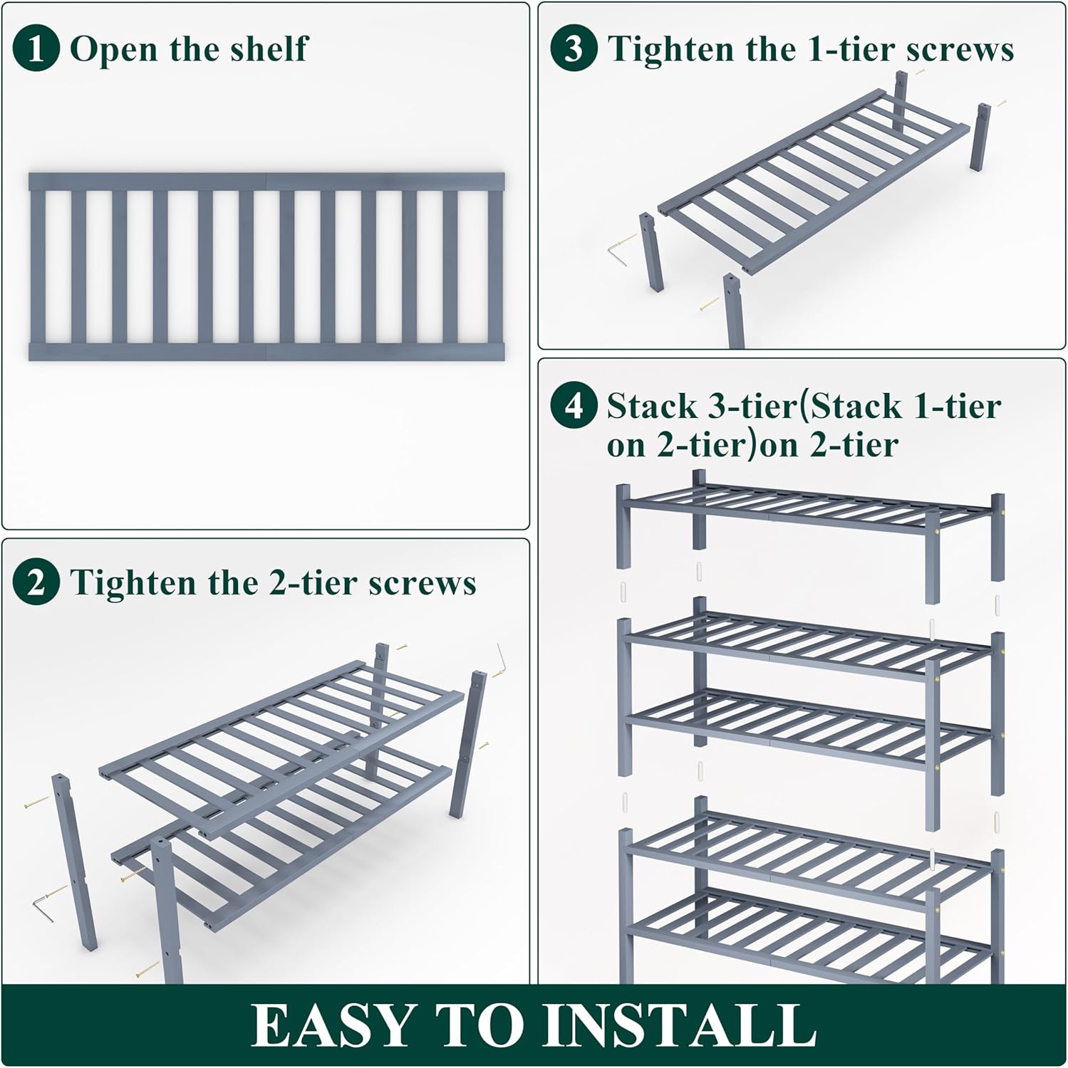 - [Stackable & Expandable] The racks can be used separately or stacked together for more storage. Combine 1-tier + 2-tier for 3 tiers, or 2-tier + 2-tier for 4 tiers. Easily expand and customize the configuration to fit your space and needs