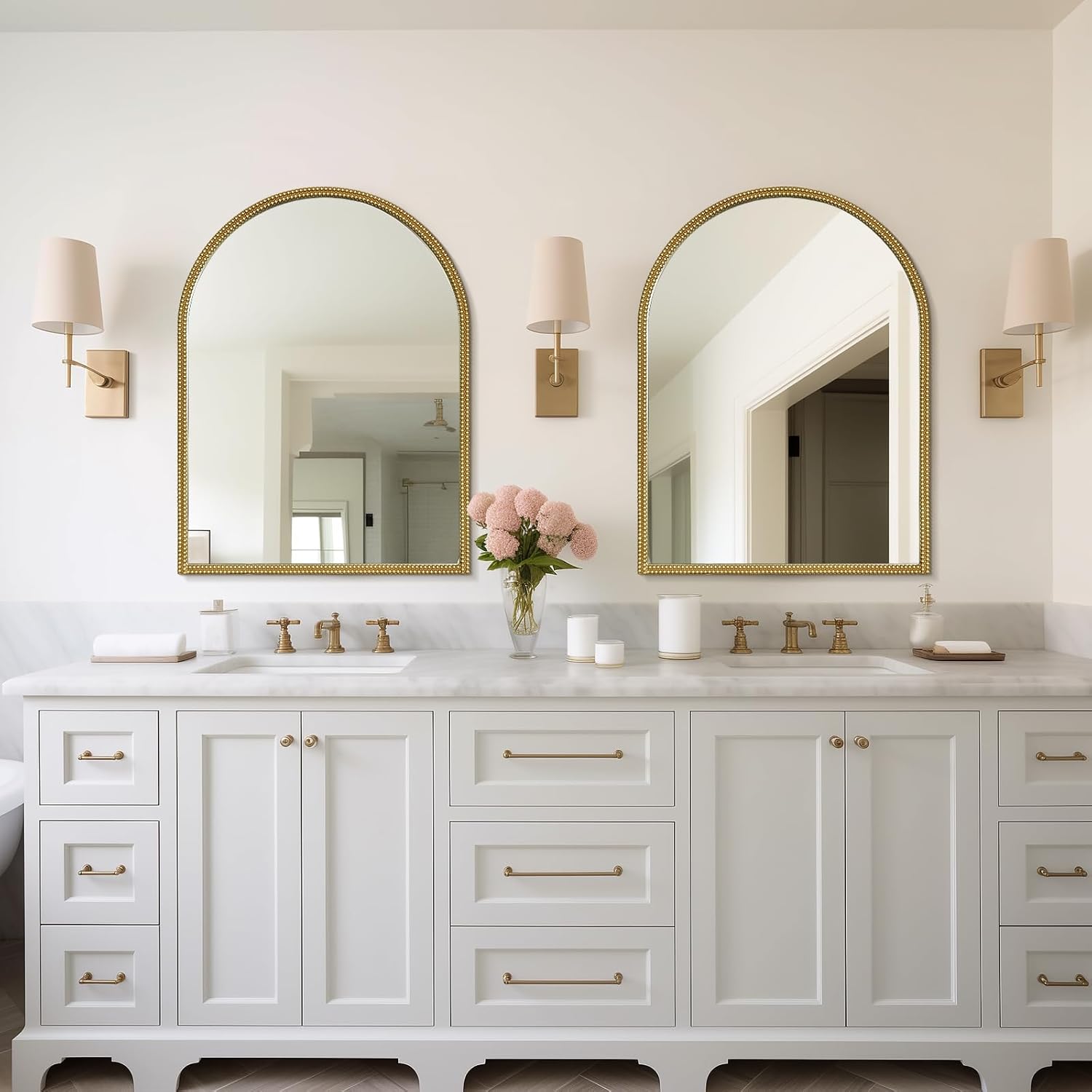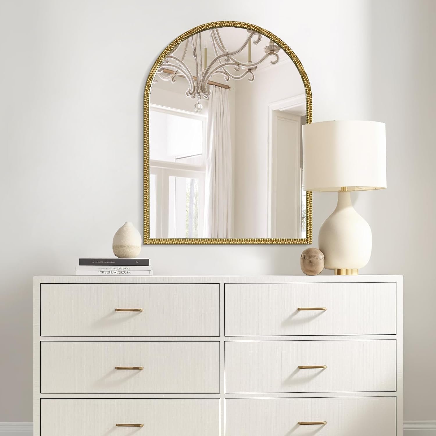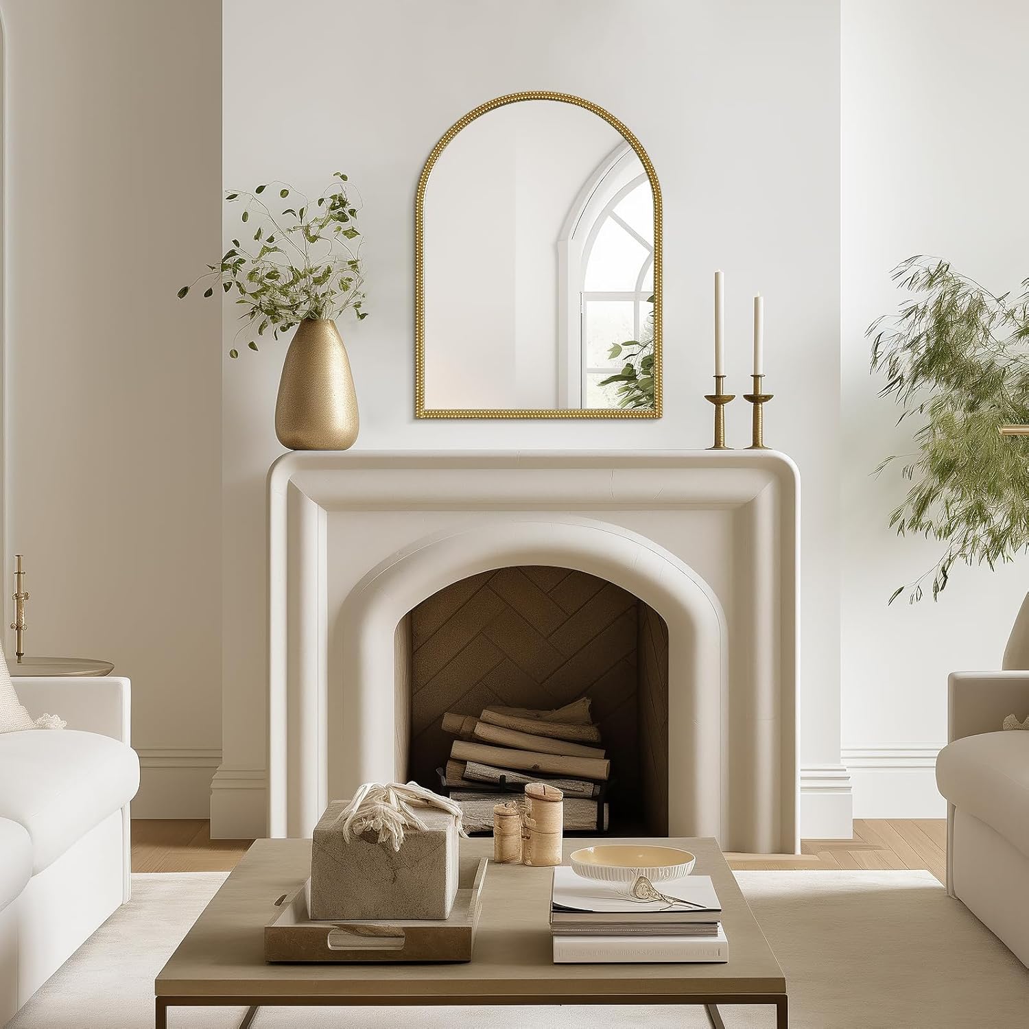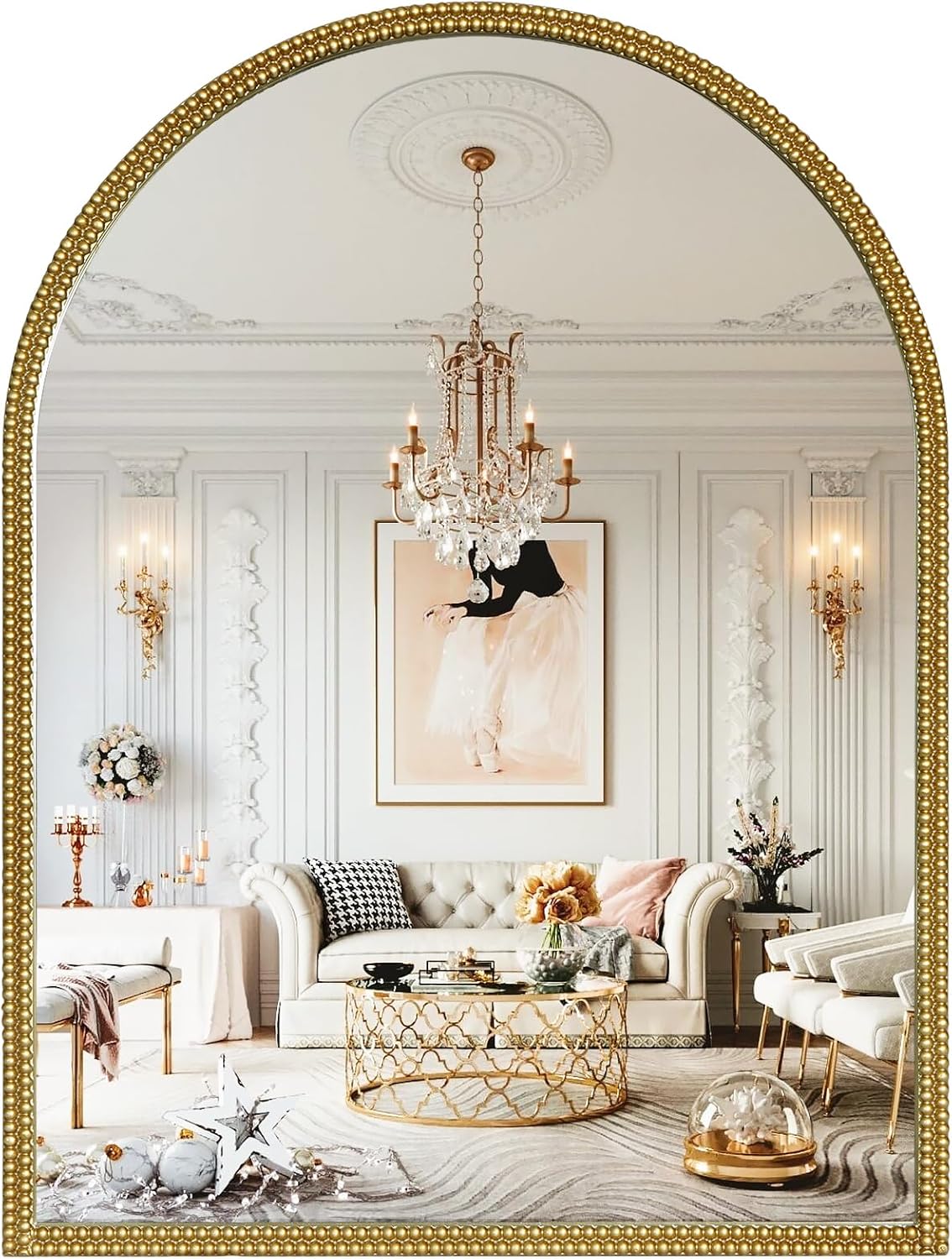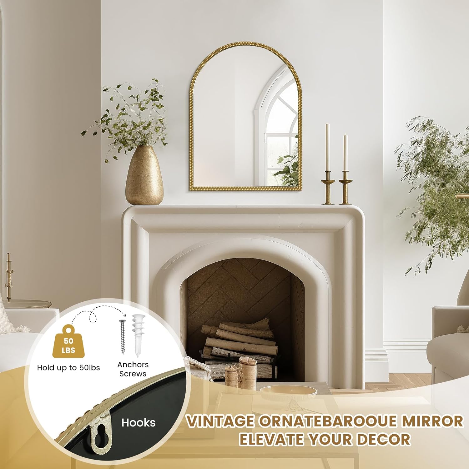 - Unique Vintage Design – Featuring an elegant arched silhouette and a double-beaded metal frame, this gold vintage mirror exudes timeless sophistication. Perfect for entryways, living rooms, bedrooms, or hallways, it seamlessly complements both modern and vintage décor.