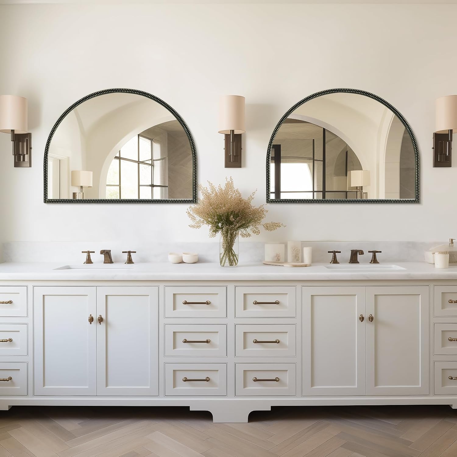 - Unique Vintage Design – Featuring an elegant arched silhouette and a double-beaded metal frame, this black vintage mirror exudes timeless sophistication. Perfect for entryways, living rooms, bedrooms, or hallways, it seamlessly complements both modern and vintage décor.