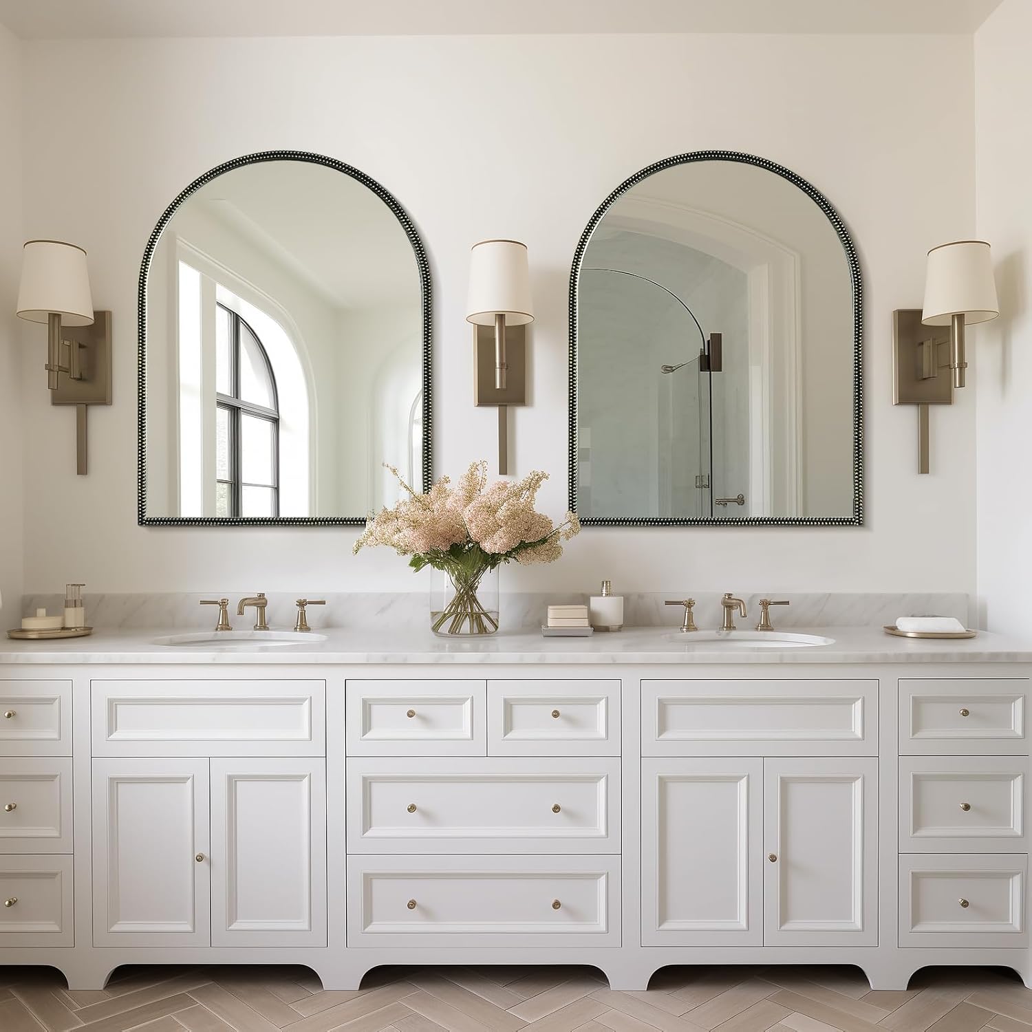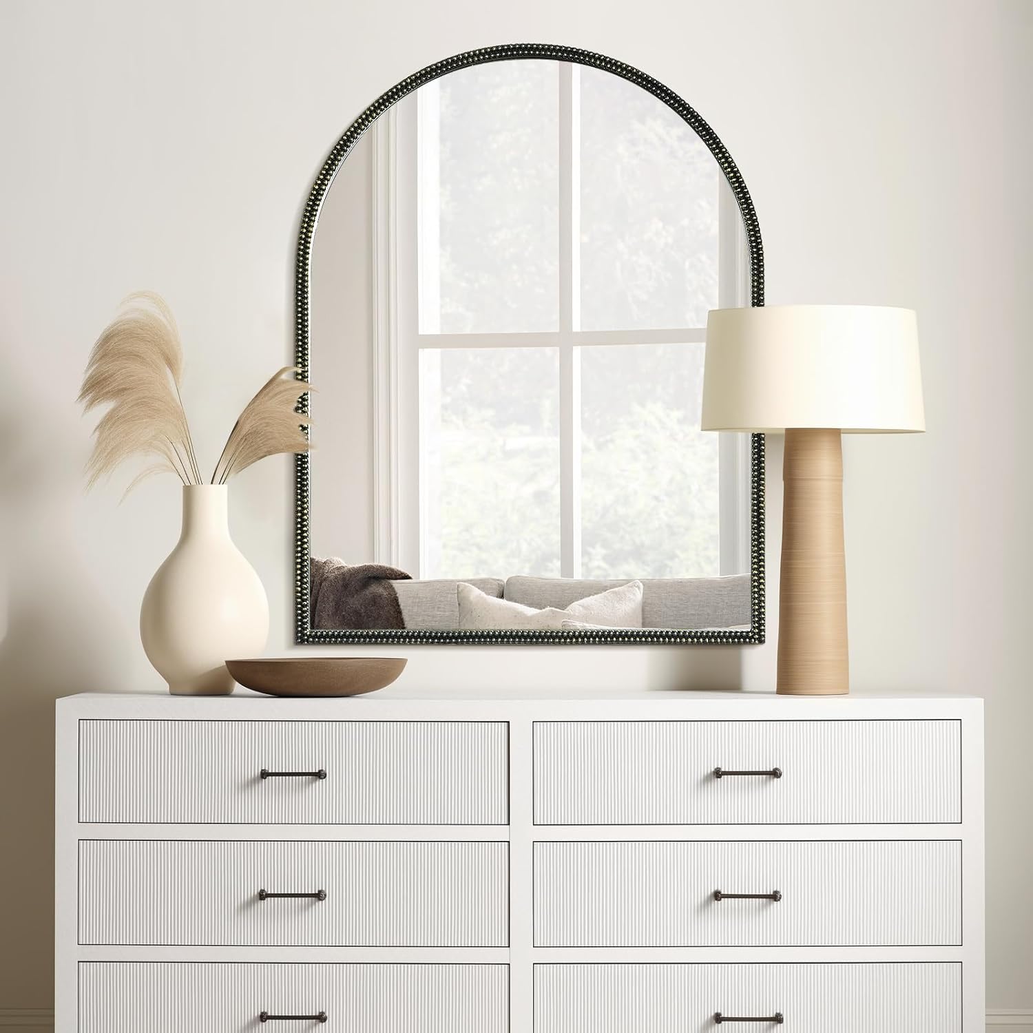 - Unique Vintage Design – Featuring an elegant arched silhouette and a double-beaded metal frame, this black vintage mirror exudes timeless sophistication. Perfect for entryways, living rooms, bedrooms, or hallways, it seamlessly complements both modern and vintage décor.