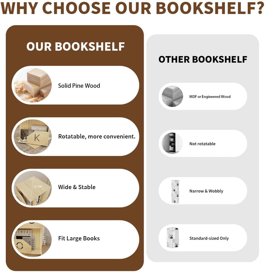 - Premium Pine Wood: Crafted from durable, eco-friendly pine wood, the spinning bookshelf tower is built for years of reading adventures while adding a cozy touch to any decor