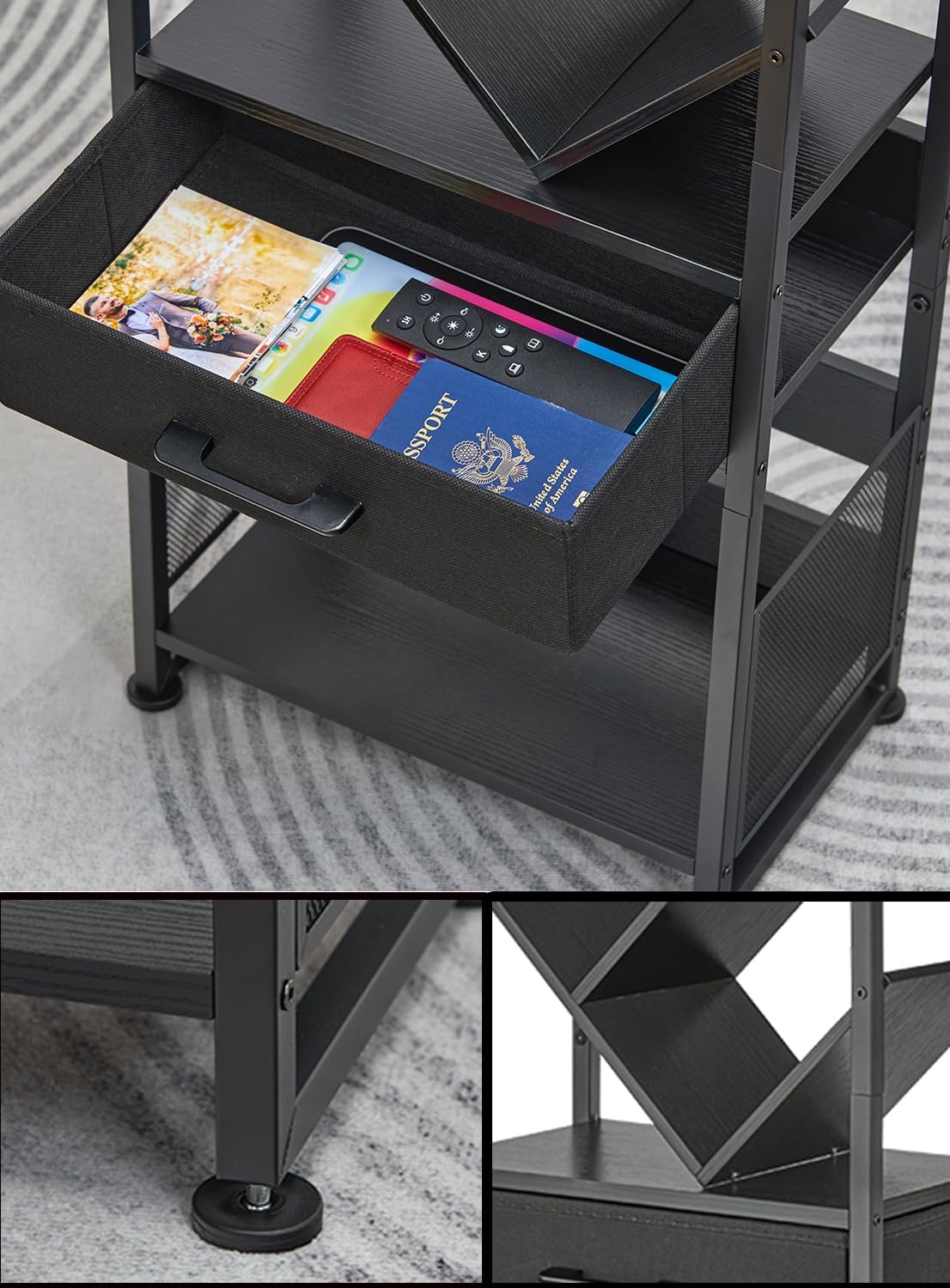 Bookshelf with Drawer,8 Tier Tree Bookcase Retro Floor Standing Bookshelves,Tall Wood Bookcases with Cabinet Storage Organizer for Living Room, Bedroom & Home Office, Black