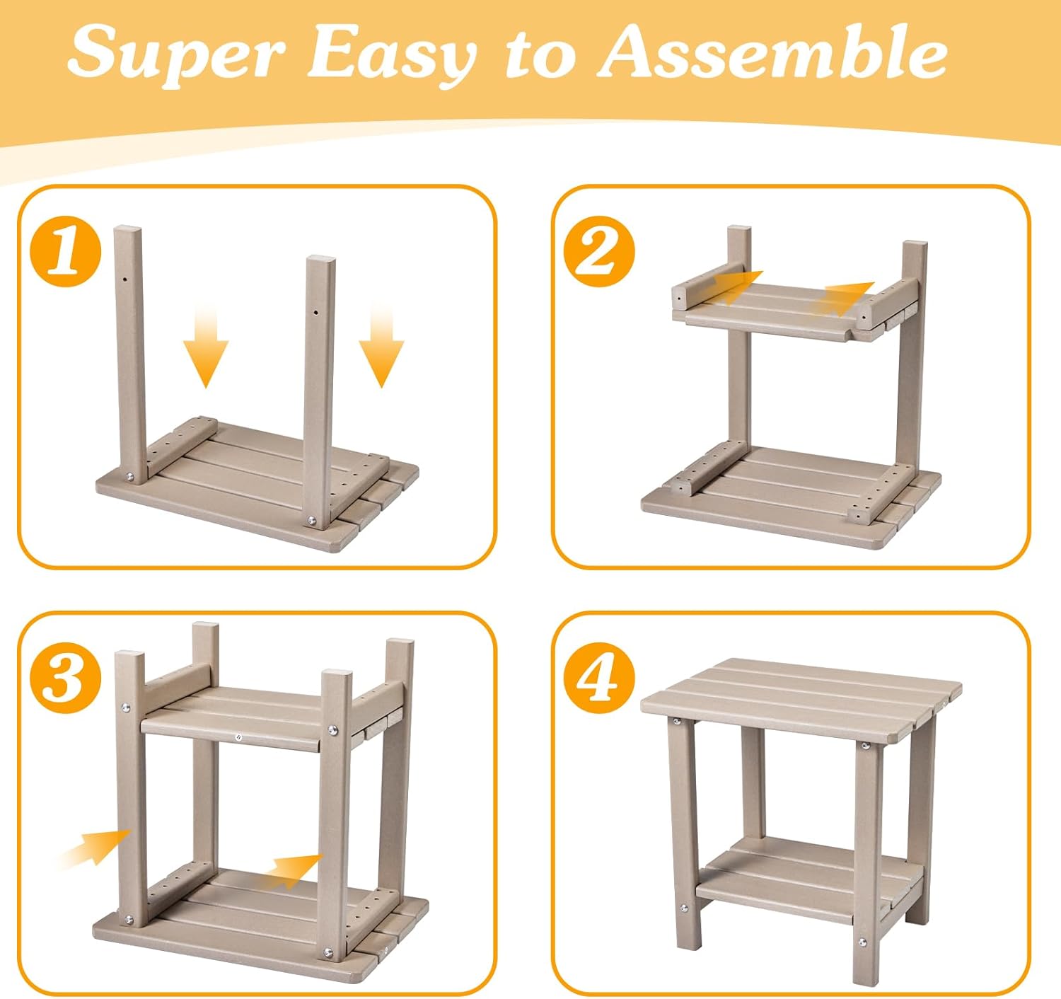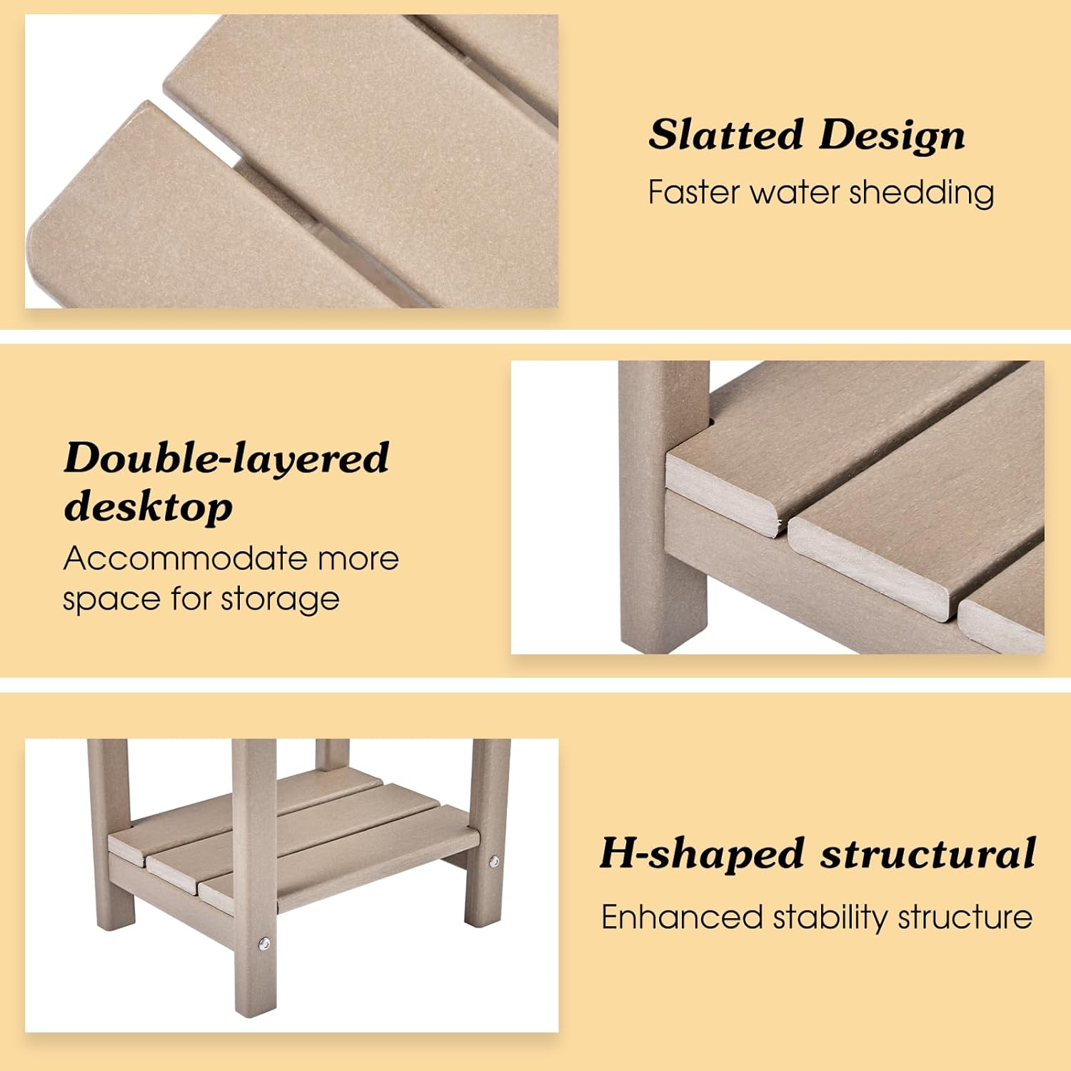 Adirondack Outdoor Side Table, 2-Tier Sturdy Patio End Table Weather Resistant, 16.5" Solid Side Table for Patio, Pool, Porch(Grayish Brown)