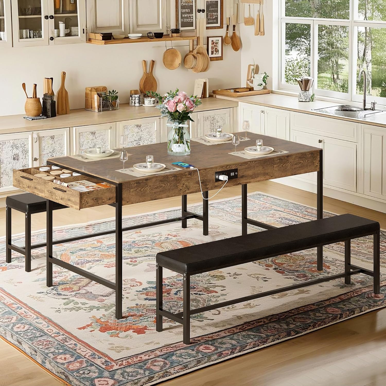 - 【Convenient Charging Station】Built-in charging stations are placed on the side of the dining table, allowing you to easily charge your devices while dining or working. No more searching for outlets, stay connected and powered up right at the kitchen table, keeping your phone, laptop, or iPad online at all times
