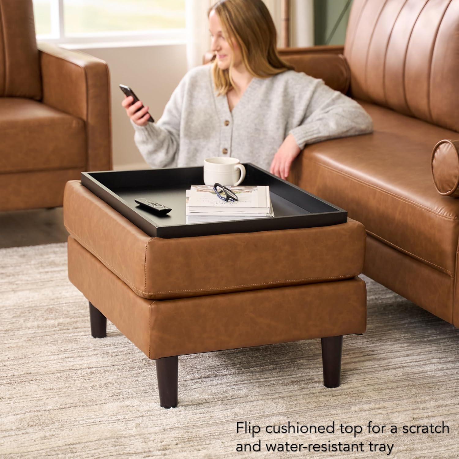 Bush Home Storage Ottoman with Tray, Living Room Furniture, Max Collection, Buffed Camel Vegan Leather