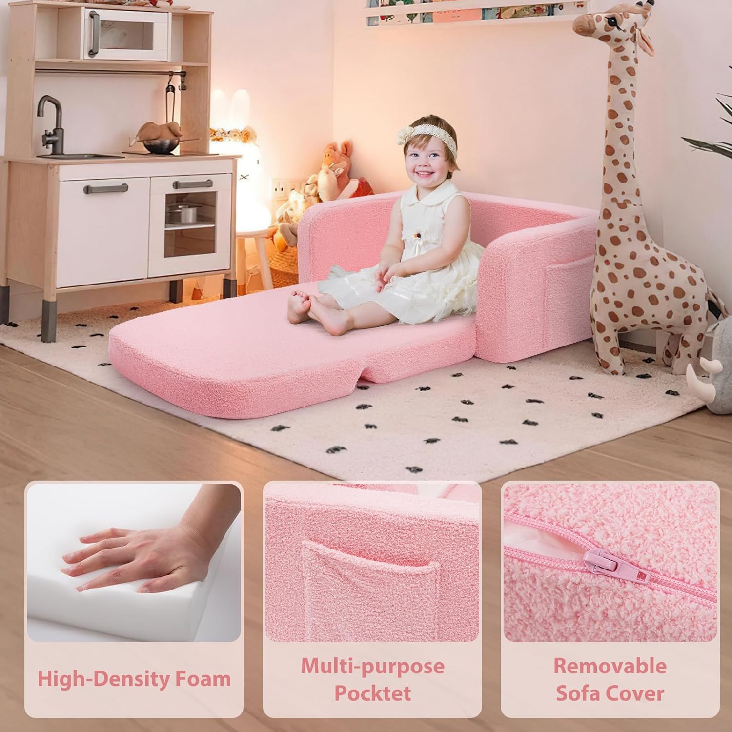 - Machine-Washable Cover: The soft, skin-friendly cover on this toddler couch is removable and machine washable, ensuring simple maintenance. Parents appreciate the easy care, while kids enjoy the freshness and comfort with every use.