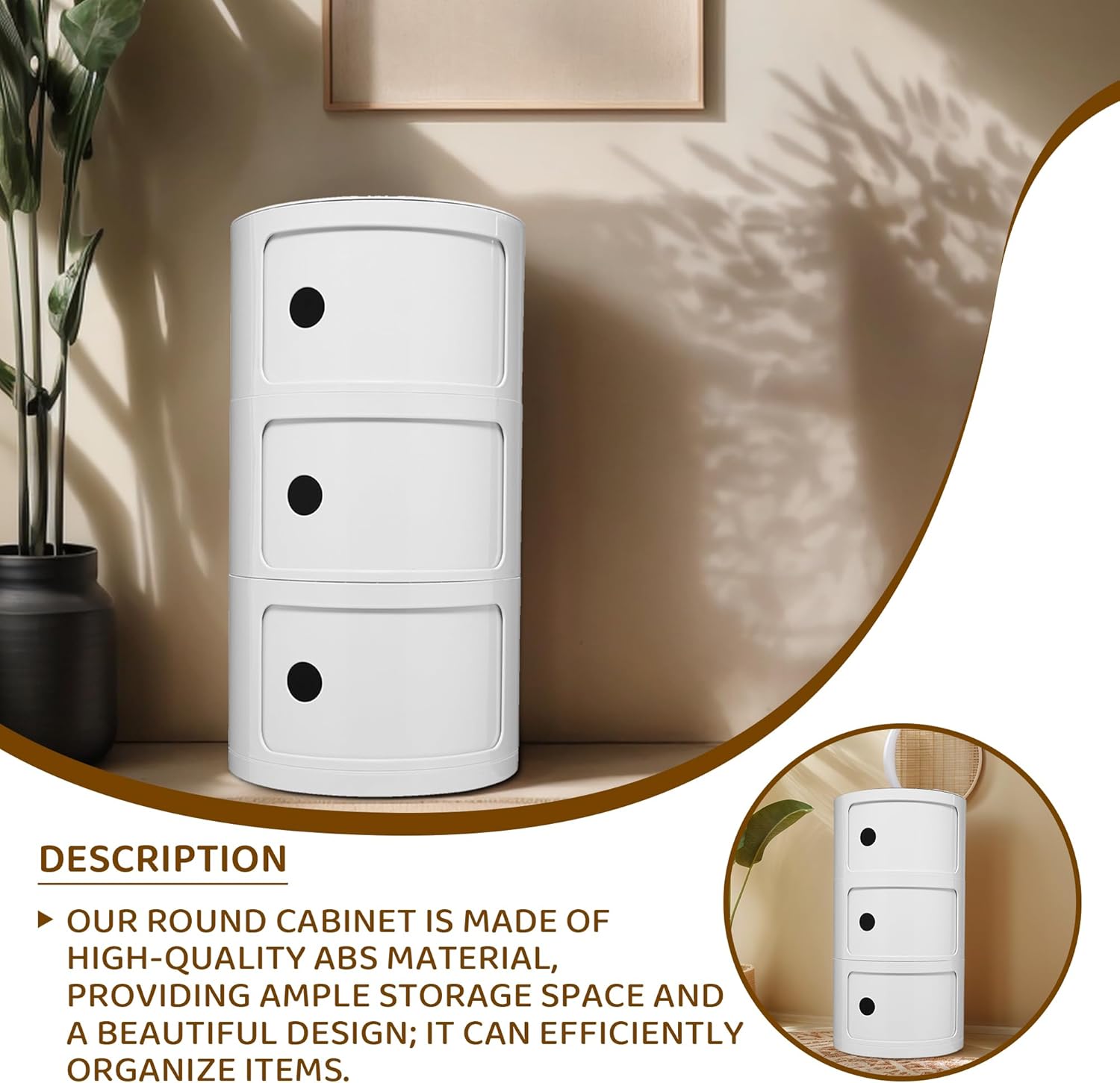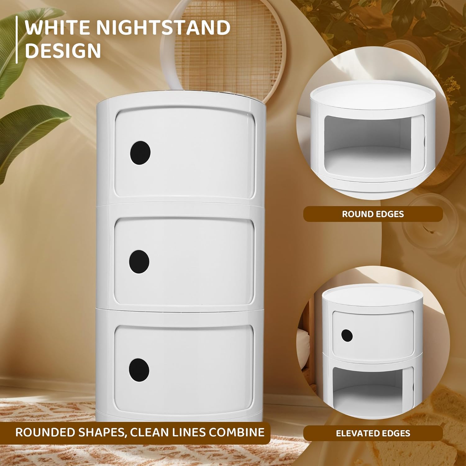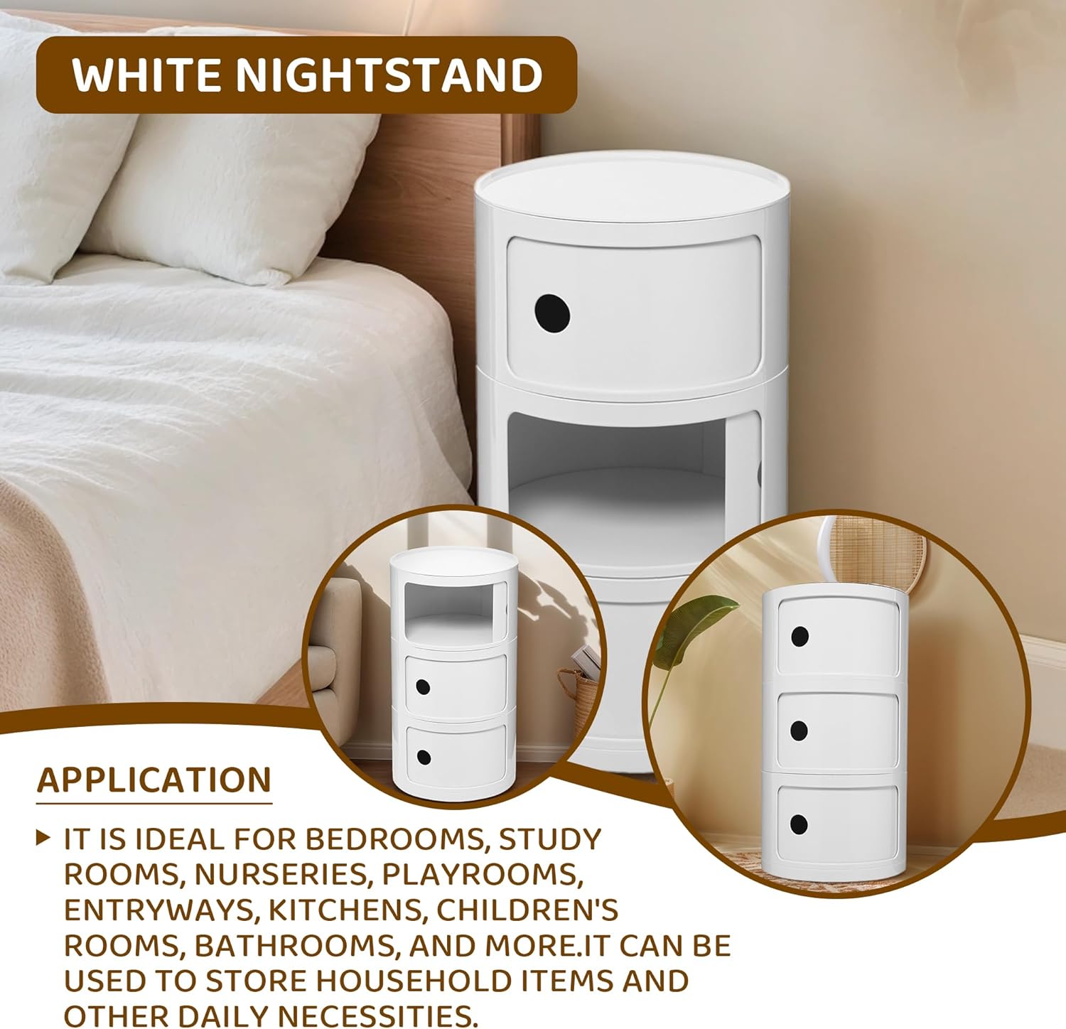 3 Tier Round with Storage, Modern Style Side Table, Multifunctional End Table Storage Cabinet for Living Room, Bedroom, Bathroom (White)