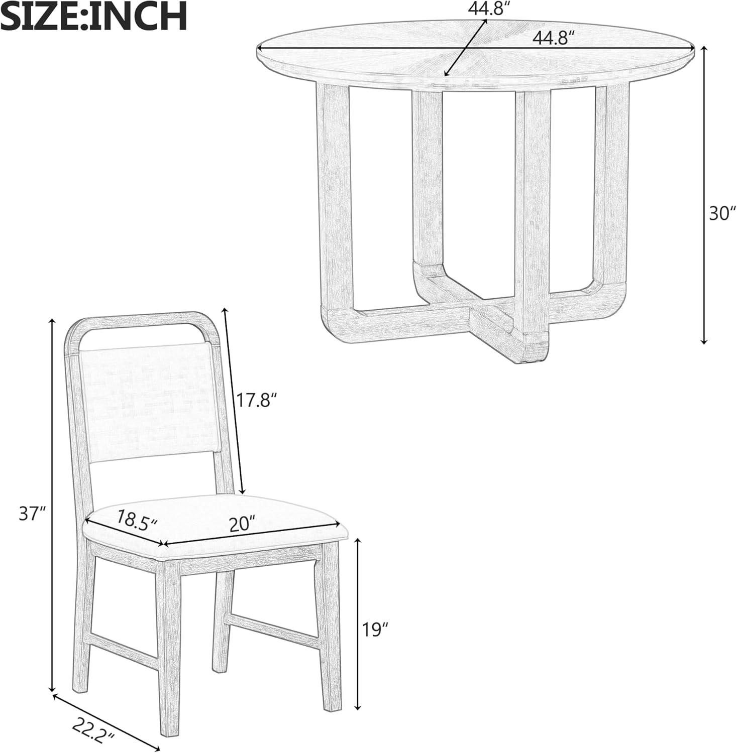 Merax 5-Piece Retro Dining Set, Round Table Top with Radial Wood Grain Design and 4 Upholstered Chairs for Dining Room and Kitchen, Antique Gray