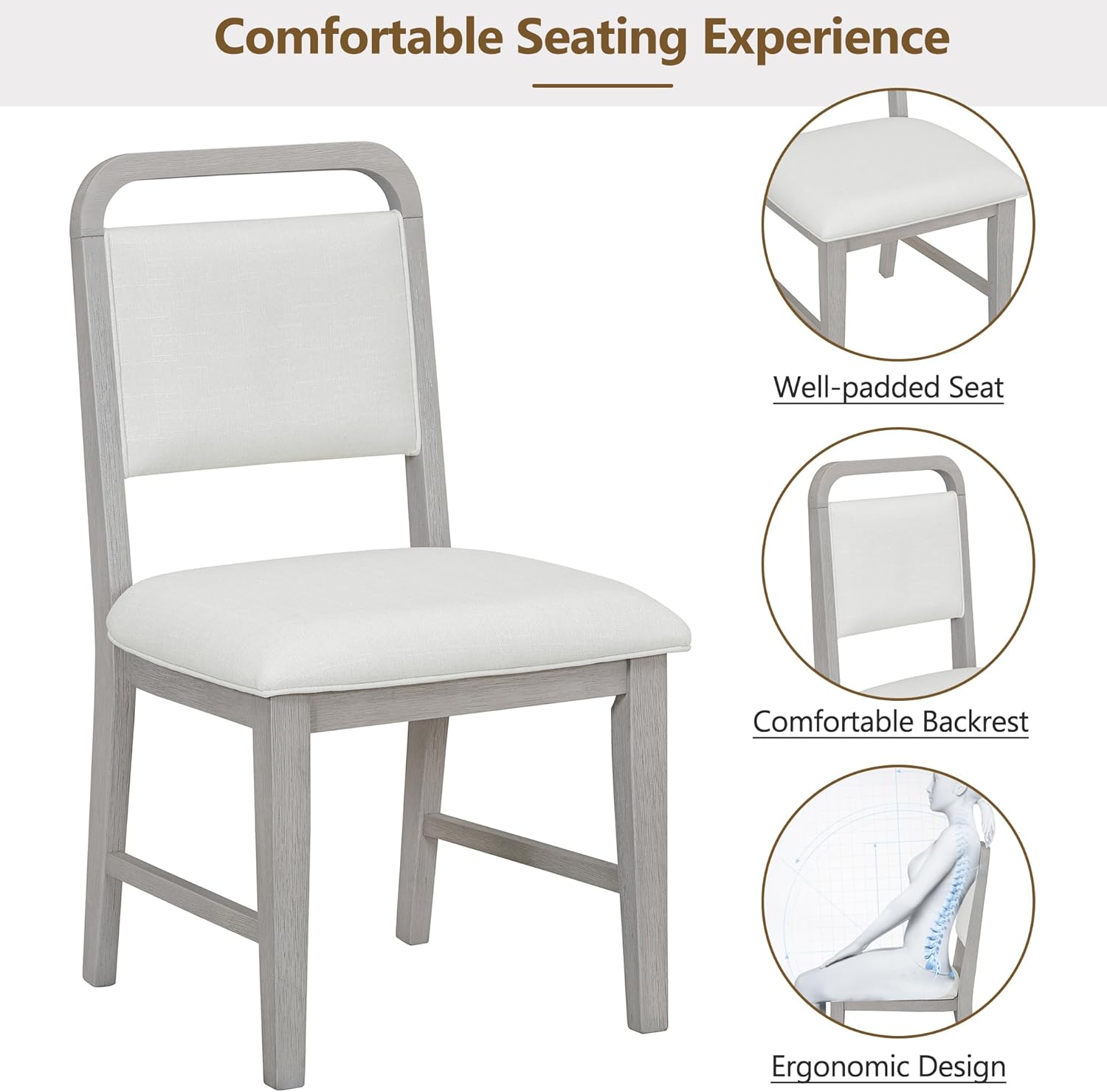 - ✨[Comfortable Seating Experience] Each chair is equipped with a well-padded seat and backrest, covered in a soft, durable fabric that enhances comfort during extended dining sessions. The ergonomic design of the chairs, with a gently curved backrest, ensures optimal support, reducing fatigue even during long meals. This attention to comfort makes the dining experience more enjoyable for you and your guests.