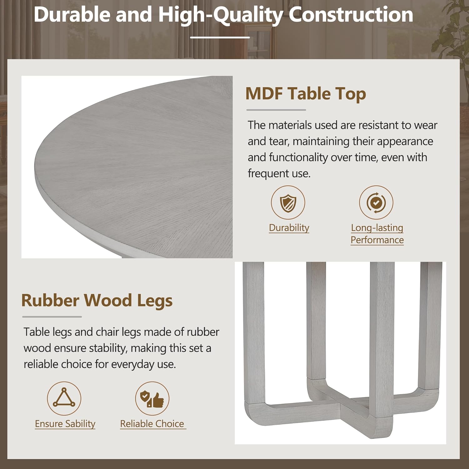 - ✨[Durable and High-Quality Construction] The dining set is crafted from high-quality wood, ensuring its durability and long-lasting performance. Table legs and chair legs made of rubber wood ensure stability, making this set a reliable choice for everyday use. The materials used are resistant to wear and tear, maintaining their appearance and functionality over time, even with frequent use.