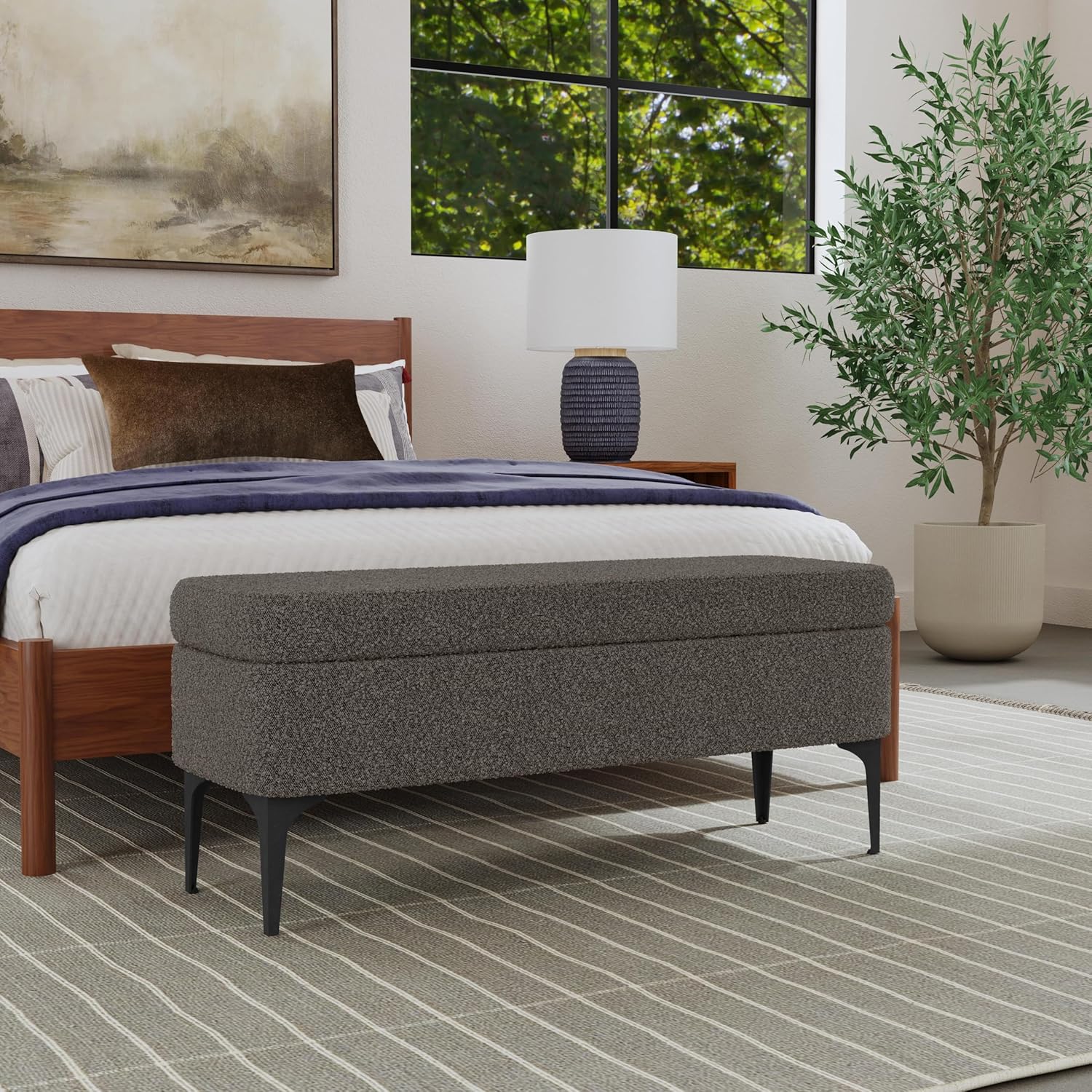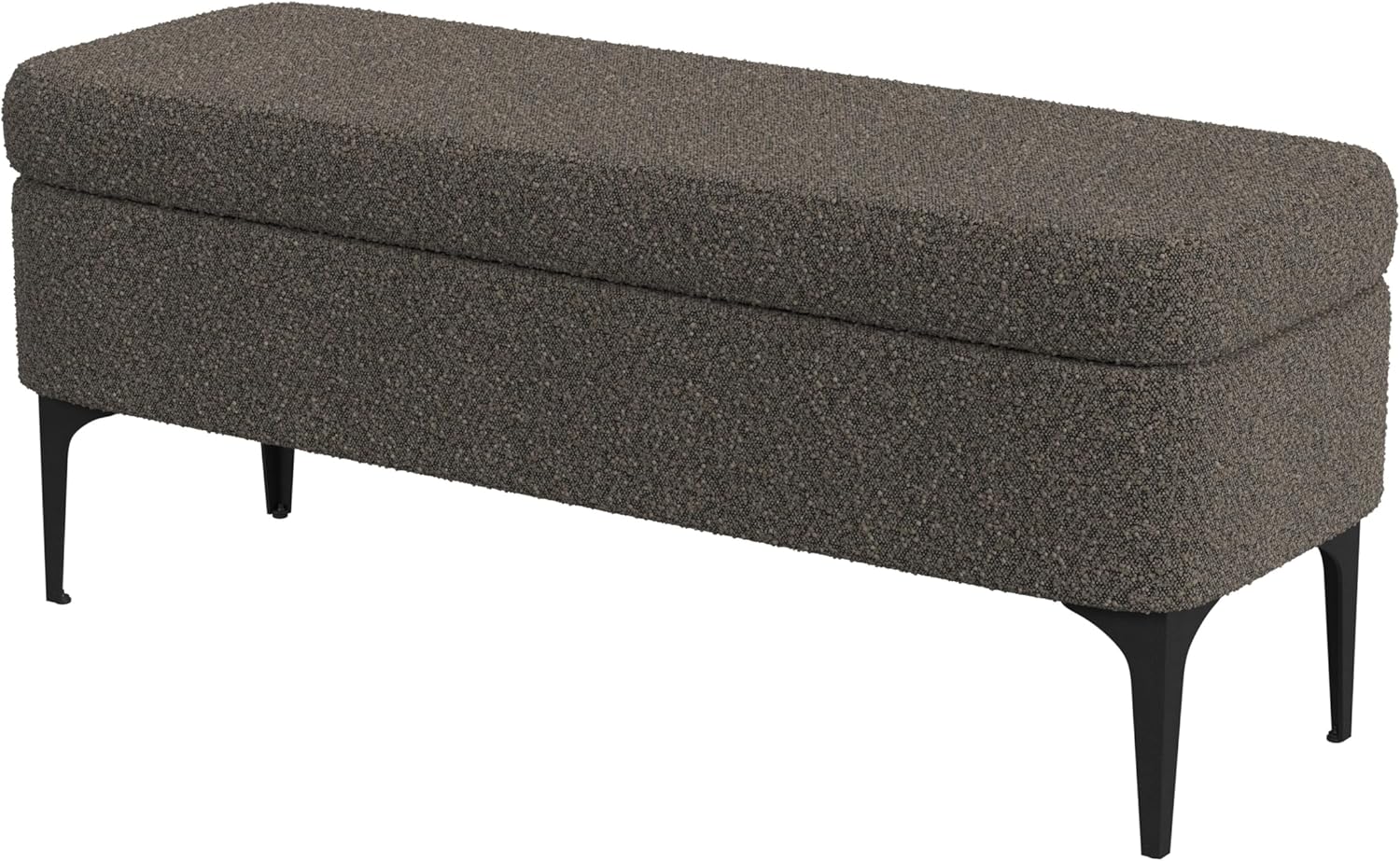 HomePop Upholstered Storage Bench with Metal Leg Home Décor|Bench with Storage for Living Room & Entryway - Dark Brown Boucle