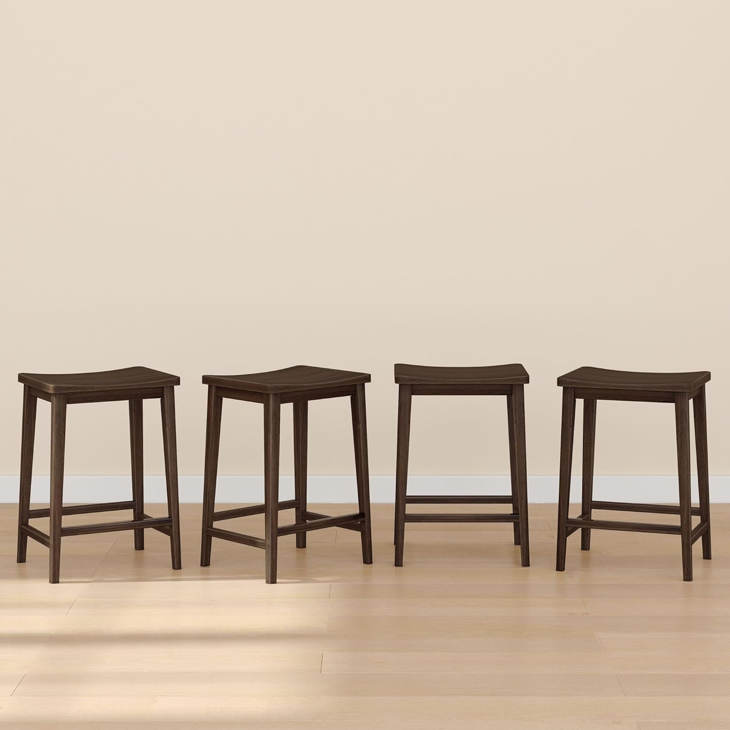 Plank+Beam Smythe Counter Stool, 24", Set of 4, Sturdy Wood Modern Kitchen Counter Height Stool, Saddle Seat Backless Counter Chair, Metal Footrest, Walnut