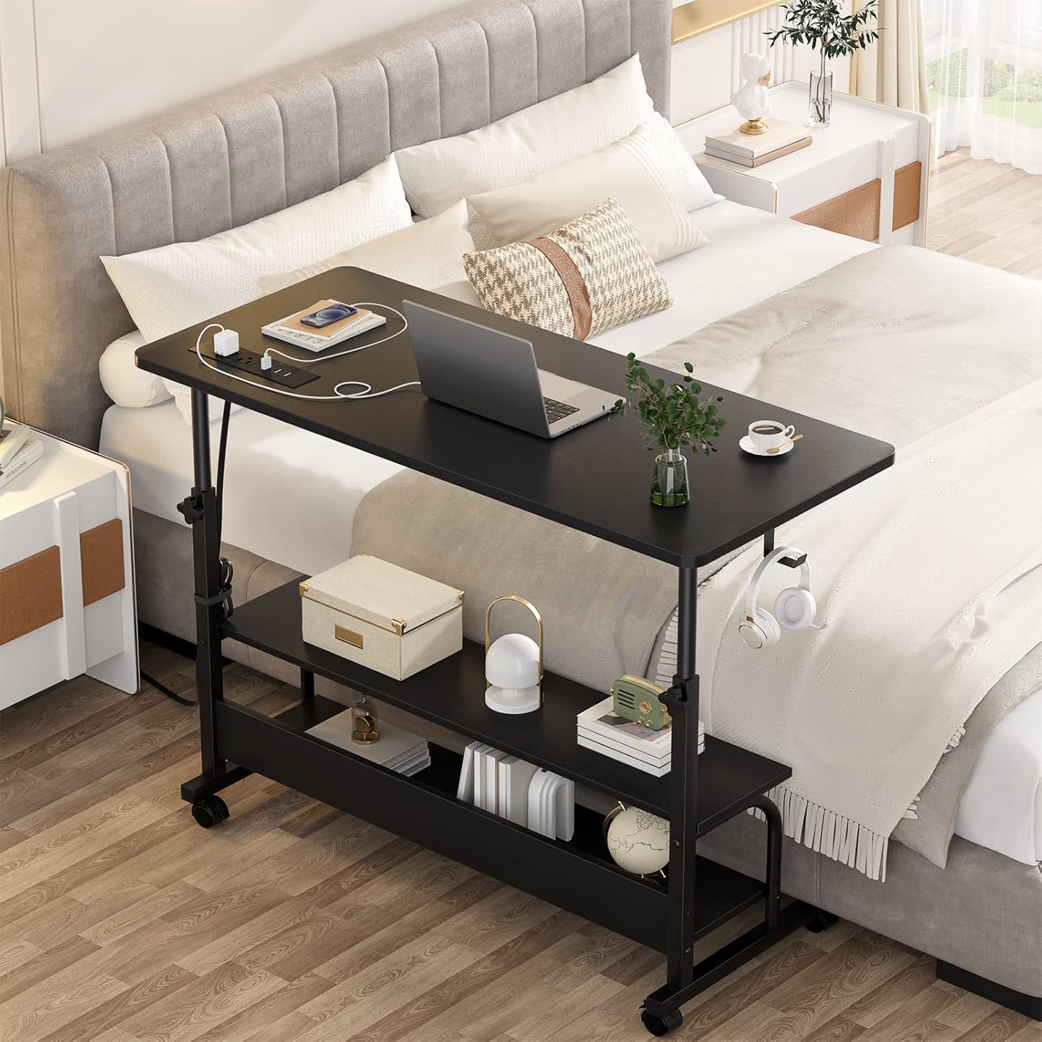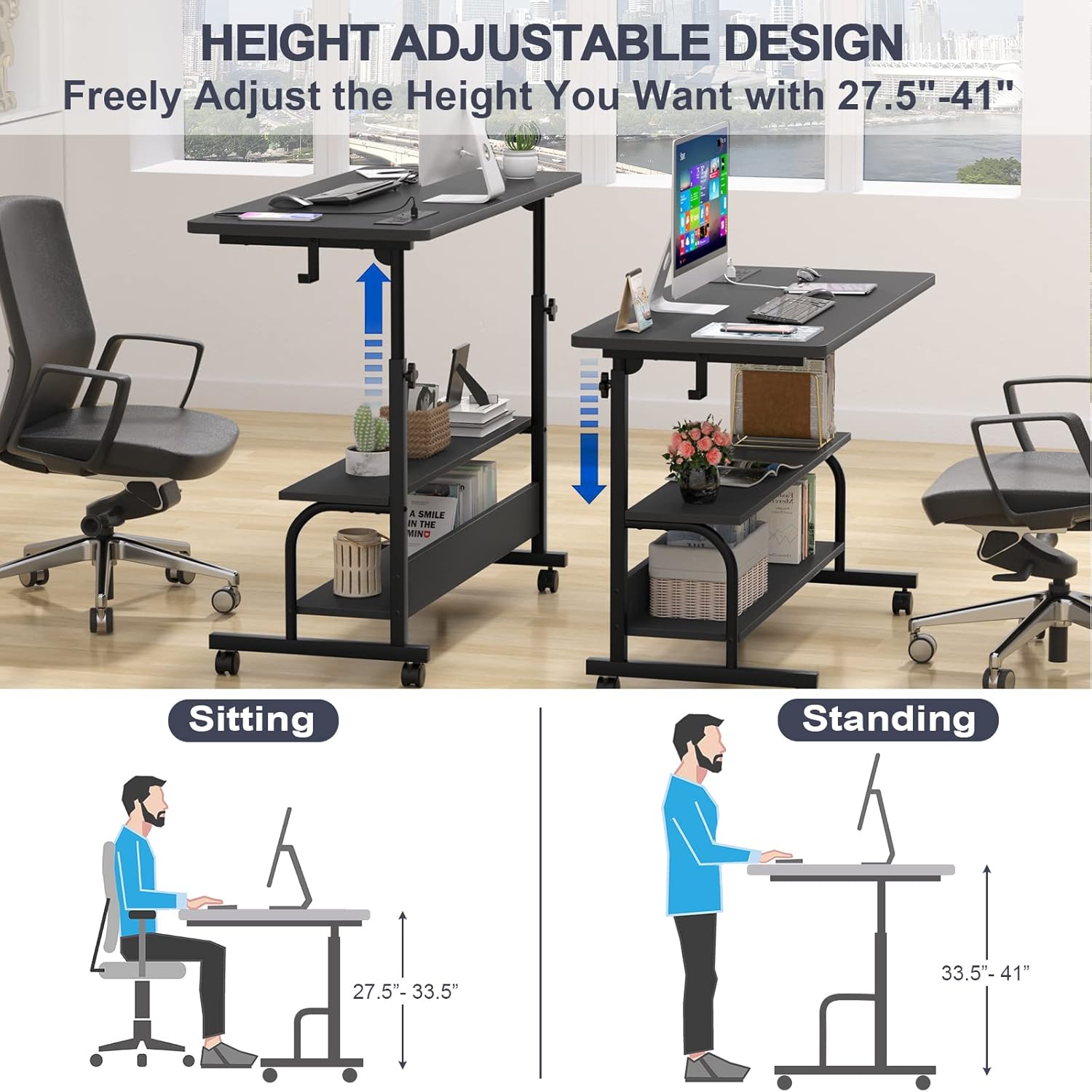Armocity Height Adjustable Standing Desk with Power Outlets, 39" Manual Stand Up Desk with Storage Shelves Small Mobile Rolling Computer Desk Portable Laptop Table with Wheels for Home Office, Black