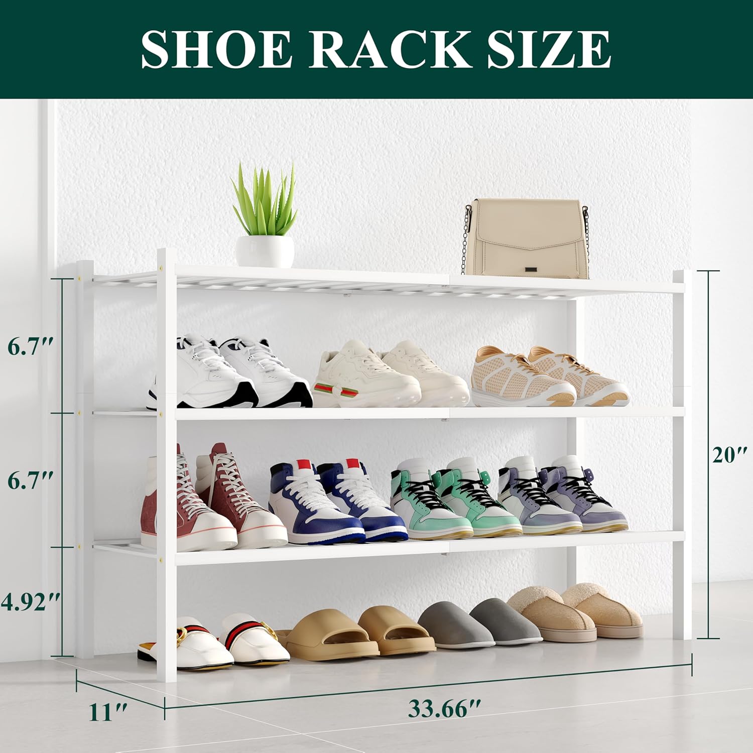 Smiry Shoe Rack, 3 Tier Long Bamboo Shoe Organizer, Stackable Free Standing Wooden Shoe Storage Shelf for Closet, Entryway, Front Door Entrance, White