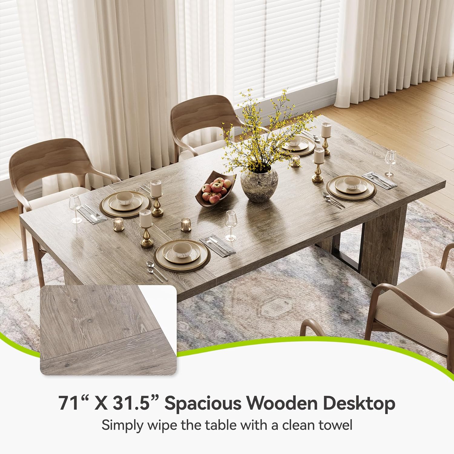 - Spacious Design: This LITTLE TREE dining table is 71 inches long, capable of comfortably accommodating 4-6 people, ideal for families or for those who love entertaining guests. The dining table fits perfectly with the rest of the furniture