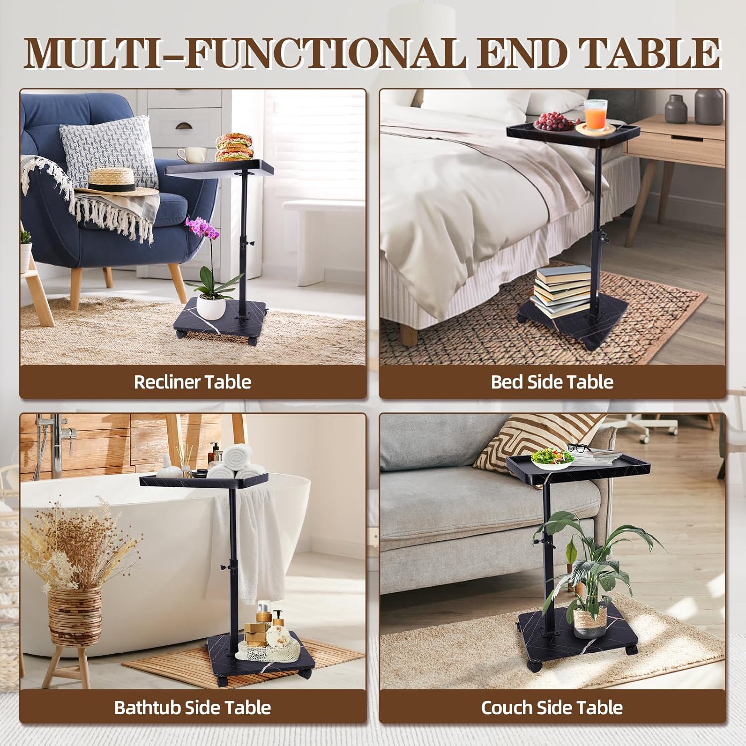 C Table Side Table End Table Adjustable Height,C Shaped End for Couch,Snack Tables,360°Swivel TV Tray Sofa Table, For Small Spaces,Side Tables living room and bedroom for Sofa, Bed,Chair(black)