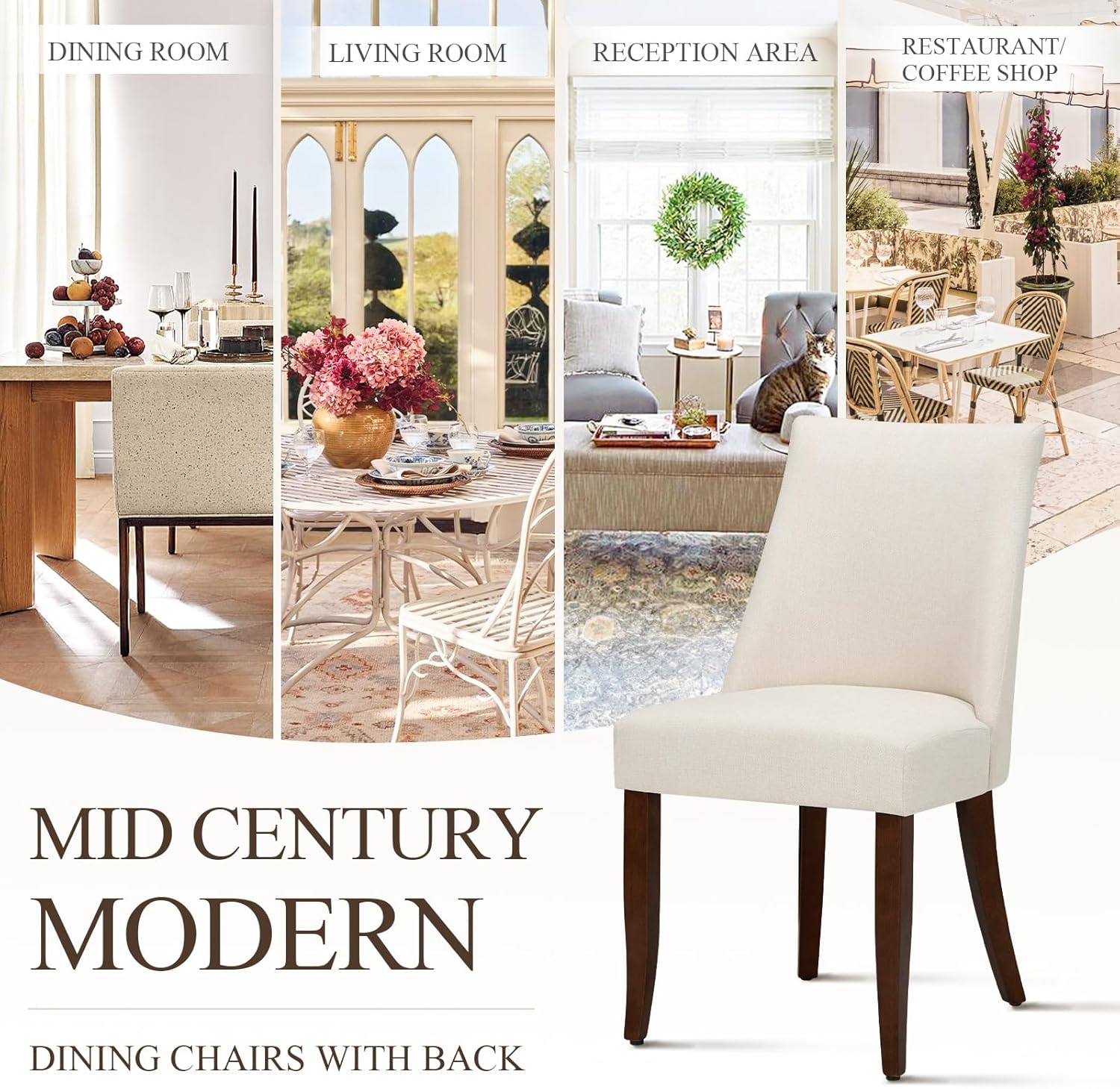 - MODERN UPHOLSTERED DINING CHAIRS SET:Modern - contemporary comfortable design of dining room chairs with Back make them suitable for a wide range of interior decors. Measuring 19.88 inches in height, dining chairs with wooden legs exude elegance and sophistication, making them the fine choice for families and business places alike. The padding and support provided by these dinner chairs ensure that your guests will be comfortable while sitting during meals or activities.