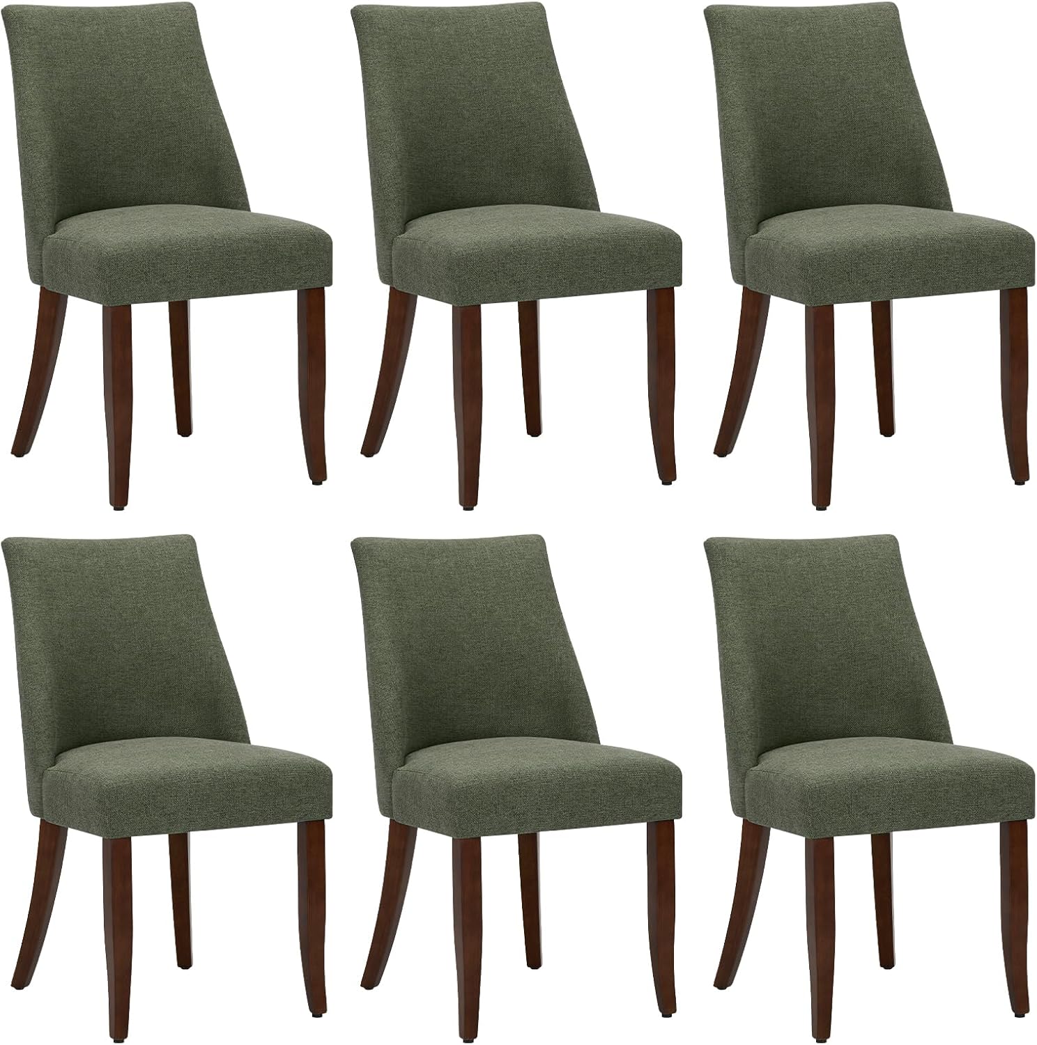 COLAMY Upholstered Dining Chairs Set of 6, Mid Century Modern Kitchen Chairs with Back, Farmhouse Fabric Side Dining Room Chairs with Wood Legs for Dining Room Restaurant, Green