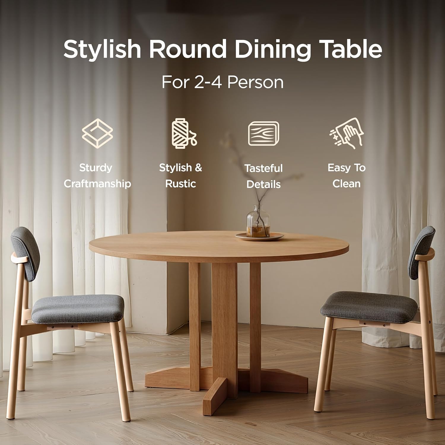 - Sturdy Construction: The modern round dinner table frame is built with solid rubber wood throughout, including the unique cross-design pedestal base, ensuring exceptional stability and long-lasting durability.
