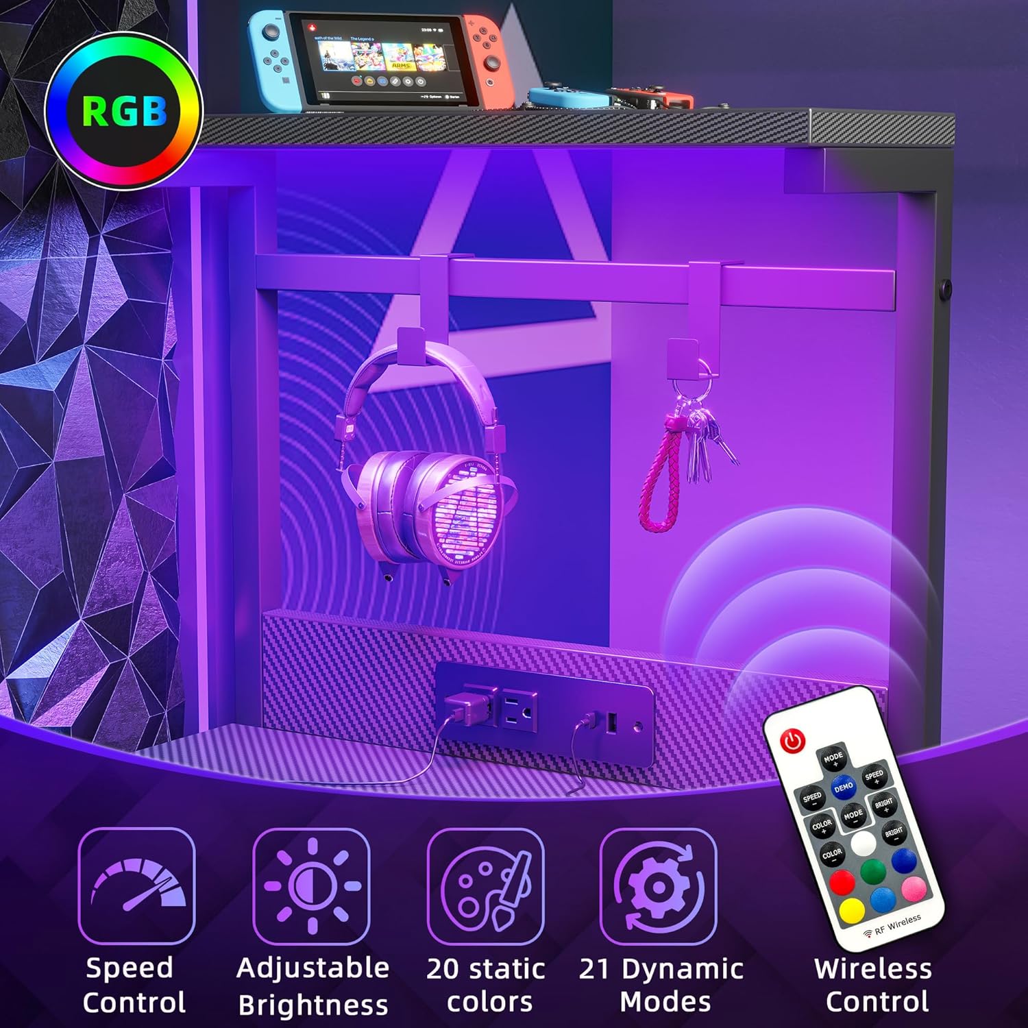 - LED Light Strip Included: Our desk comes with an integrated LED light strip, offering remote and app control for brightness, speed, and color adjustments. This feature enhances your workspace ambiance, providing dynamic lighting to match your mood and activities, perfect for gaming or working.
