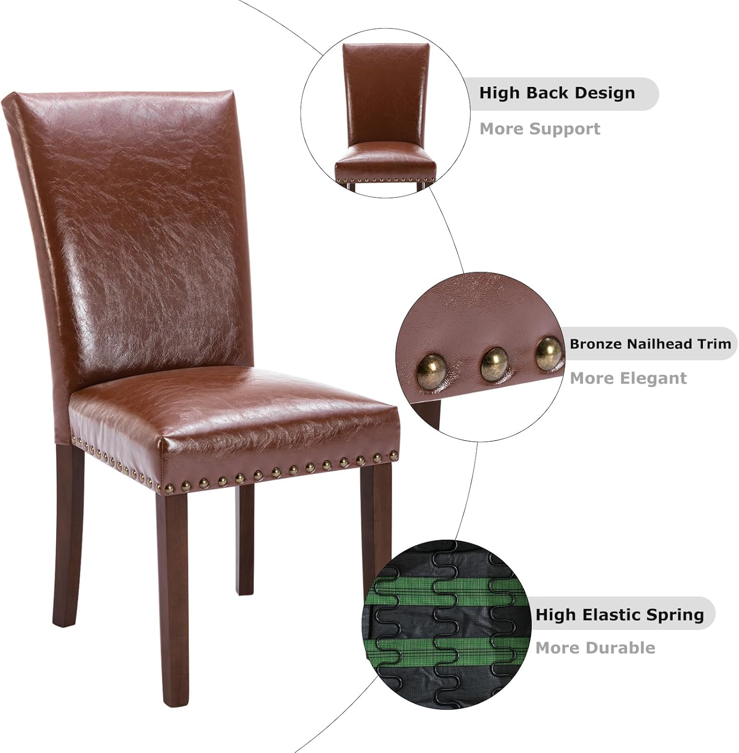 - 【Premium Faux Leather Dining Chairs】Upholstered dining room chairs have thick cushioned seats and padded back supports, which make you more enjoyable and comfortable.