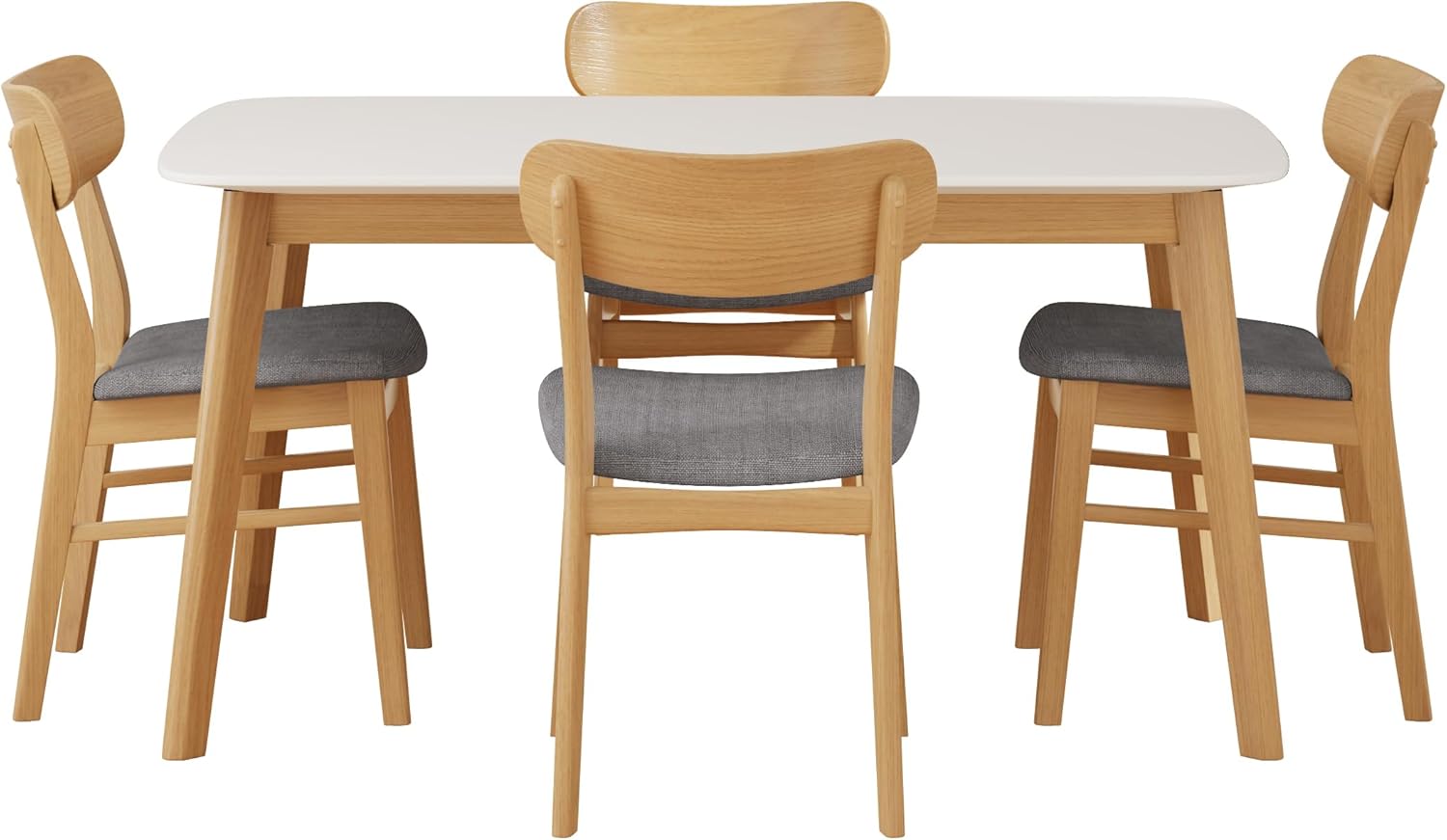 Merax 5-Piece Dining Set, Solild Wood Table & Chairs with Backrests for 4, Farmhouse Natural Kitchen Furniture for Home, Dining Room, Natural Oak+Gray