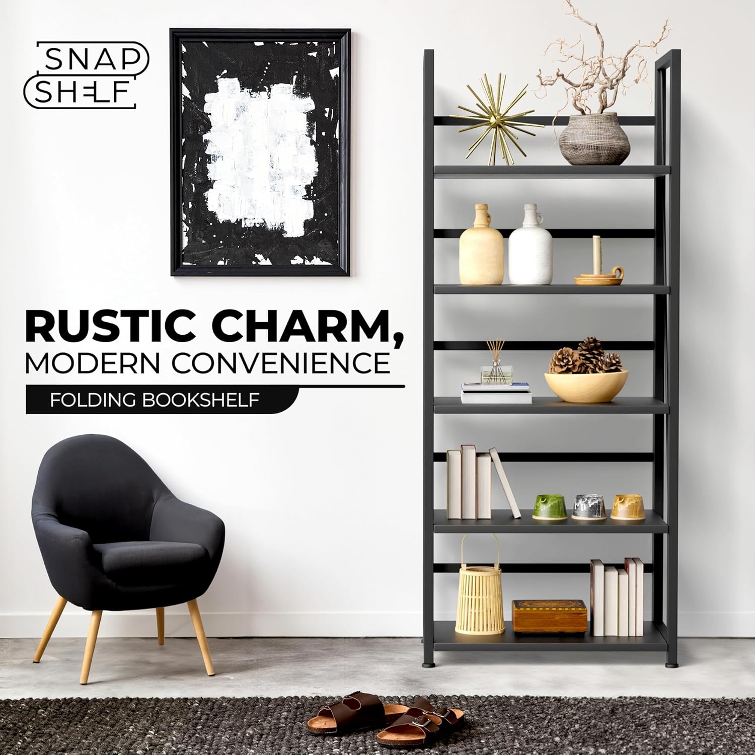 - BRING RUSTIC ELEGANCE to your living space with our collapsible bookshelf. It's the perfect addition to your office or living room, offering both function and beauty. This wood bookshelf draws the eye, creating a focal point that fills the room with warmth