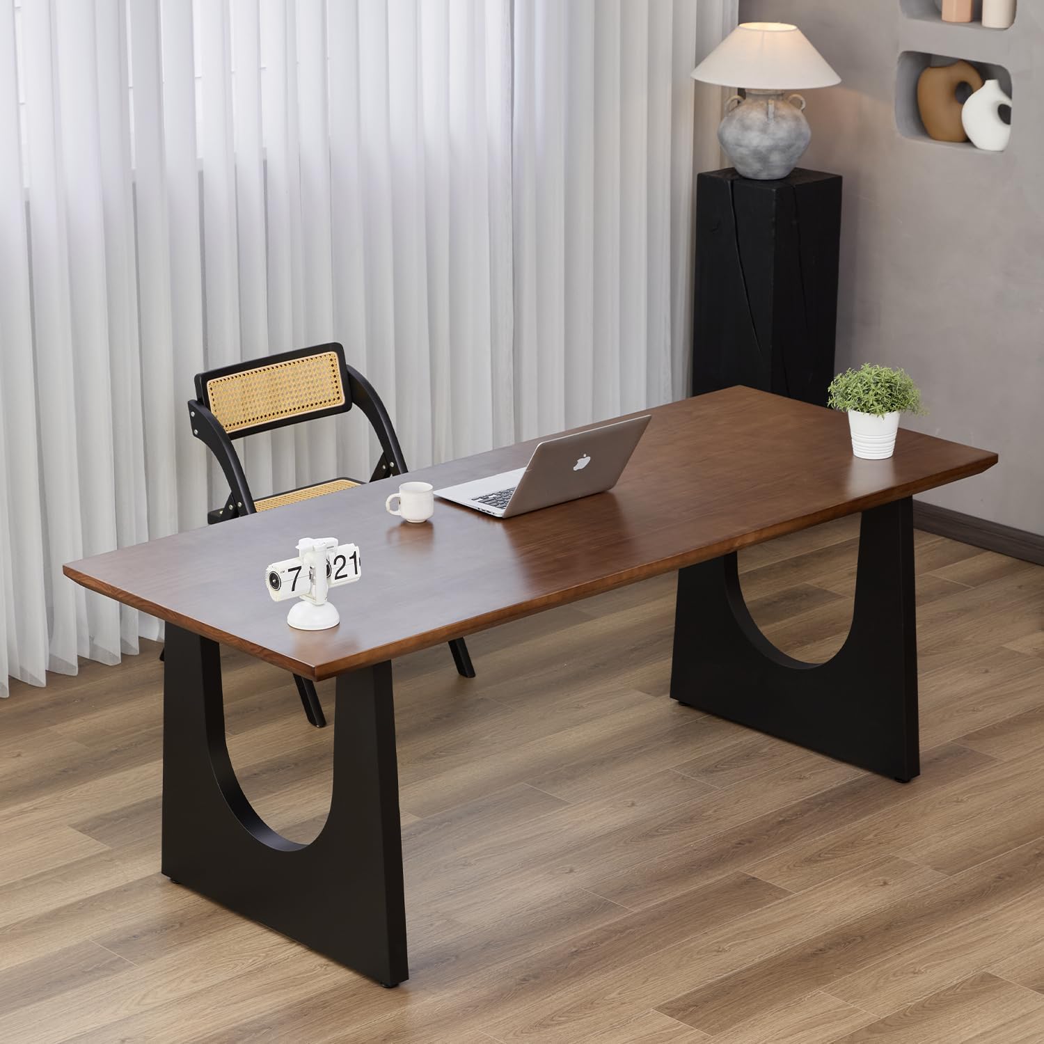 Wooden Executive Office Desk Computer Table Multi-Sized High Cost Performance Stylish Design Metal Legs Versatile Use for Office or Dining Casual Table (Walnut Color, 55.12in)