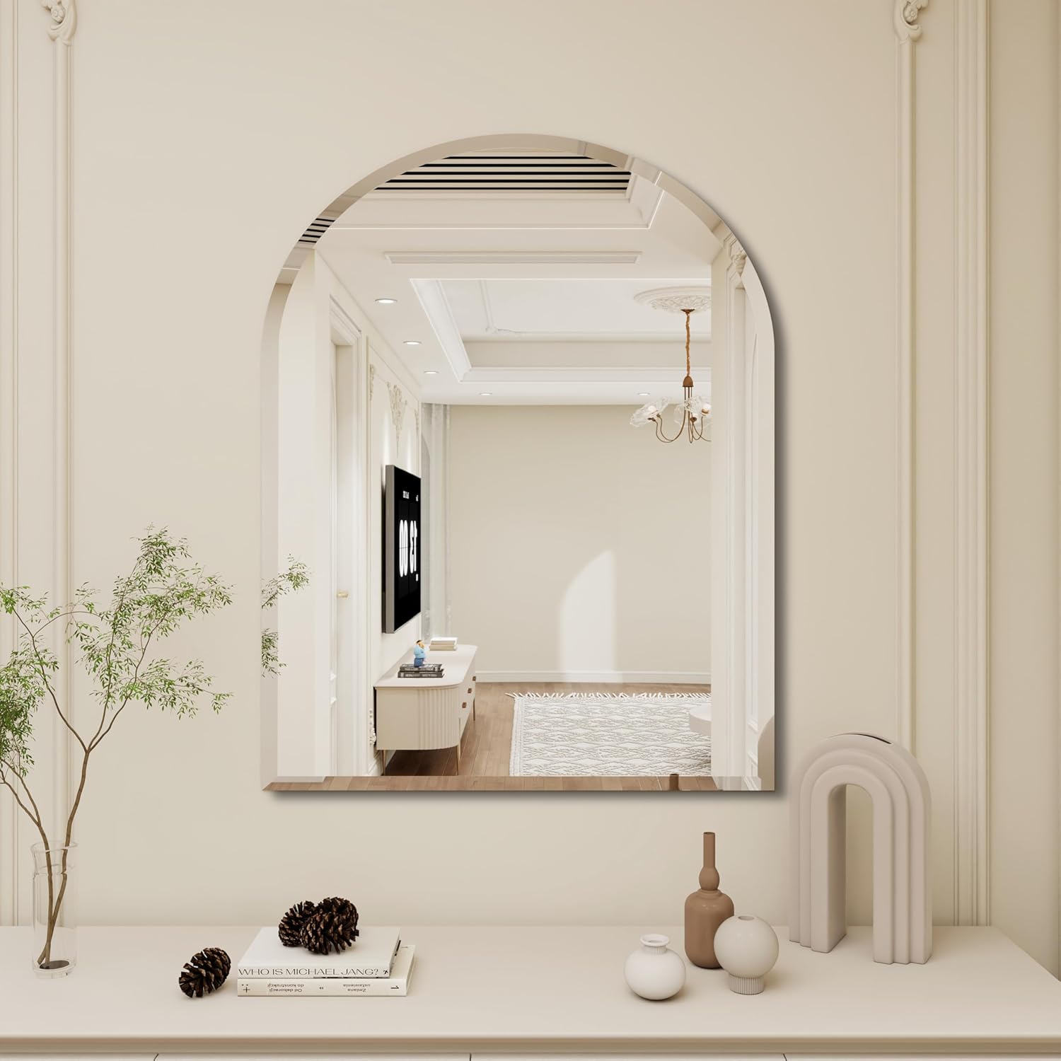 - 1. large arched mirror,Elevate your home decor with this stylish arched frameless mirror.frameless mirrors for bathroom, Perfect for the bathroom vanity, it also adds a touch of sophistication to living rooms, bedrooms, entryways, mantels, and hallways.