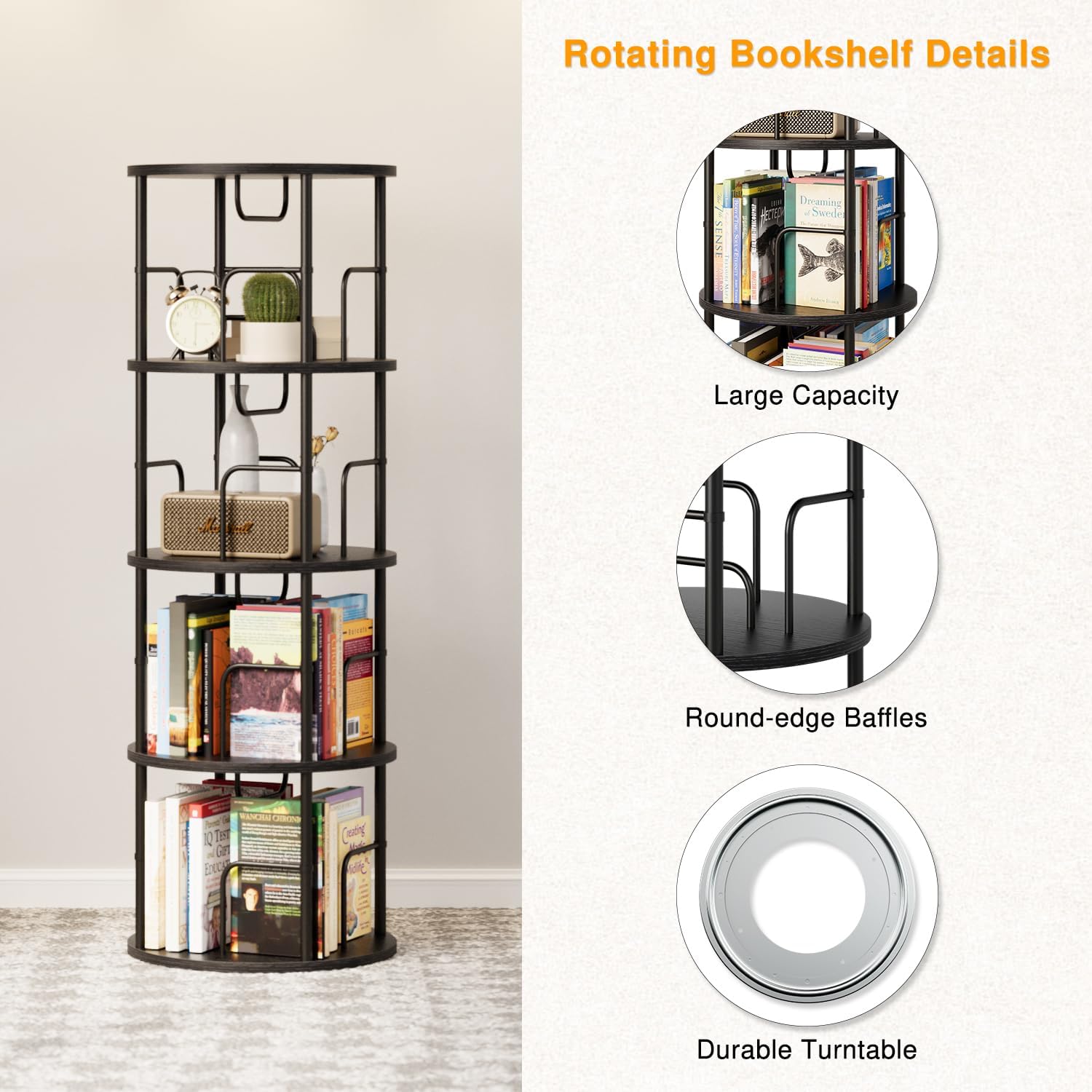 - Space-saving compared to traditional bookshelves: The cylindrical design maximizes vertical space while occupying minimal floor area, making it ideal for small homes or spaces with limited room