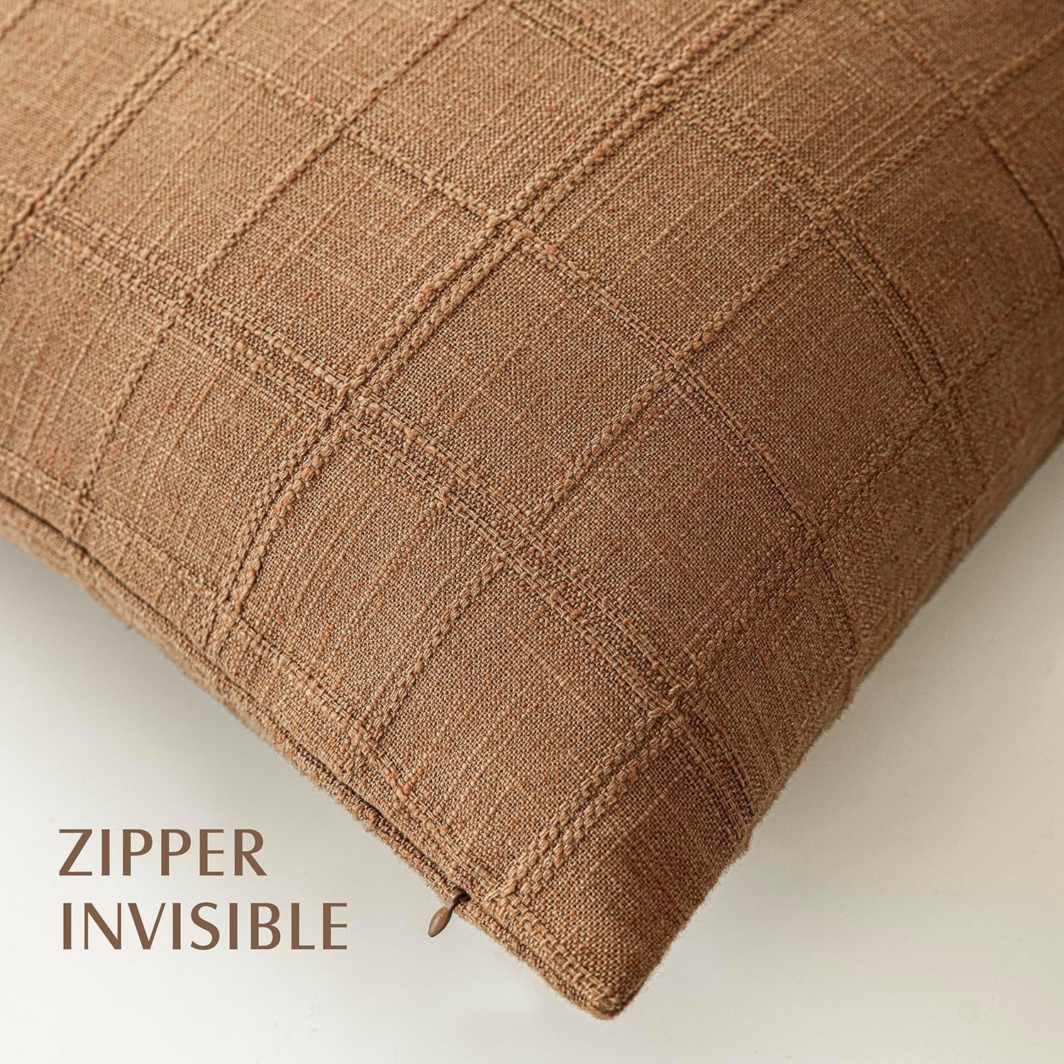 Foindtower Set of 2 Decorative Linen Check Throw Pillow Covers Neutral Farmhouse Vintage Cushion Covers Modern Boho Home Decor for Sofa Chair Couch Bedroom Living Room Outdoor,24×24 Inch,Brick