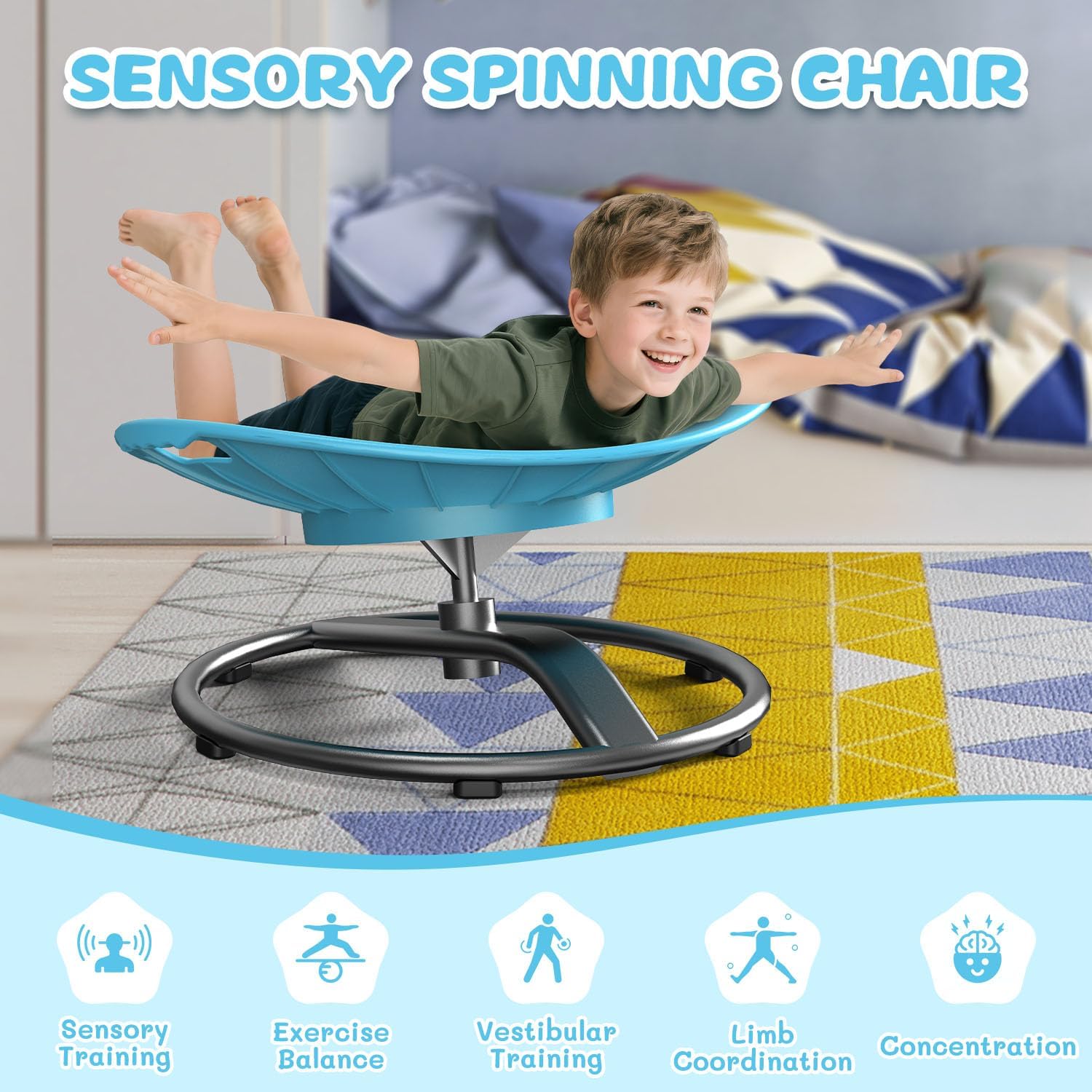 Spinning Chair for Autistic Kids - Sensory Spinning Chair for Autistic Children with Safety Handle & Non-Slip Design, Sensory Swivel Chairs for Kids 3-8 Years(Blue)