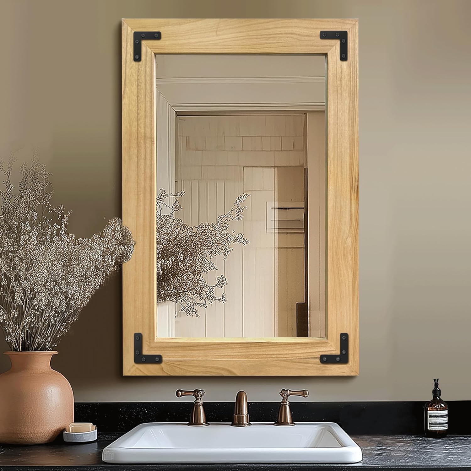 - Rustic Elegance for Your Home: This beautifully crafted rustic wood vanity mirror enhances your space. The distressed brown wooden frame exudes warmth and character, while the sleek black metal mount adds a modern farmhouse touch—perfect for bathrooms, bedrooms, entryways, or living rooms.