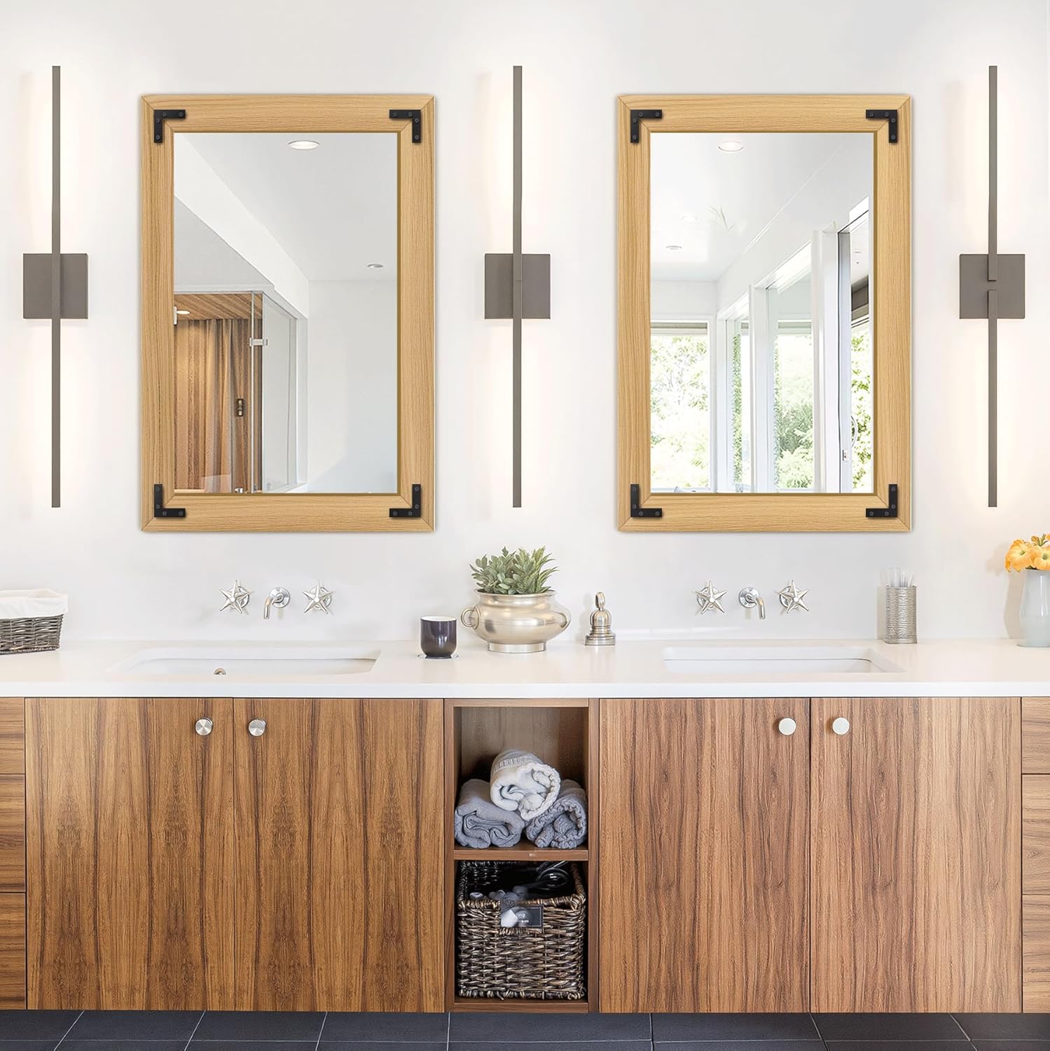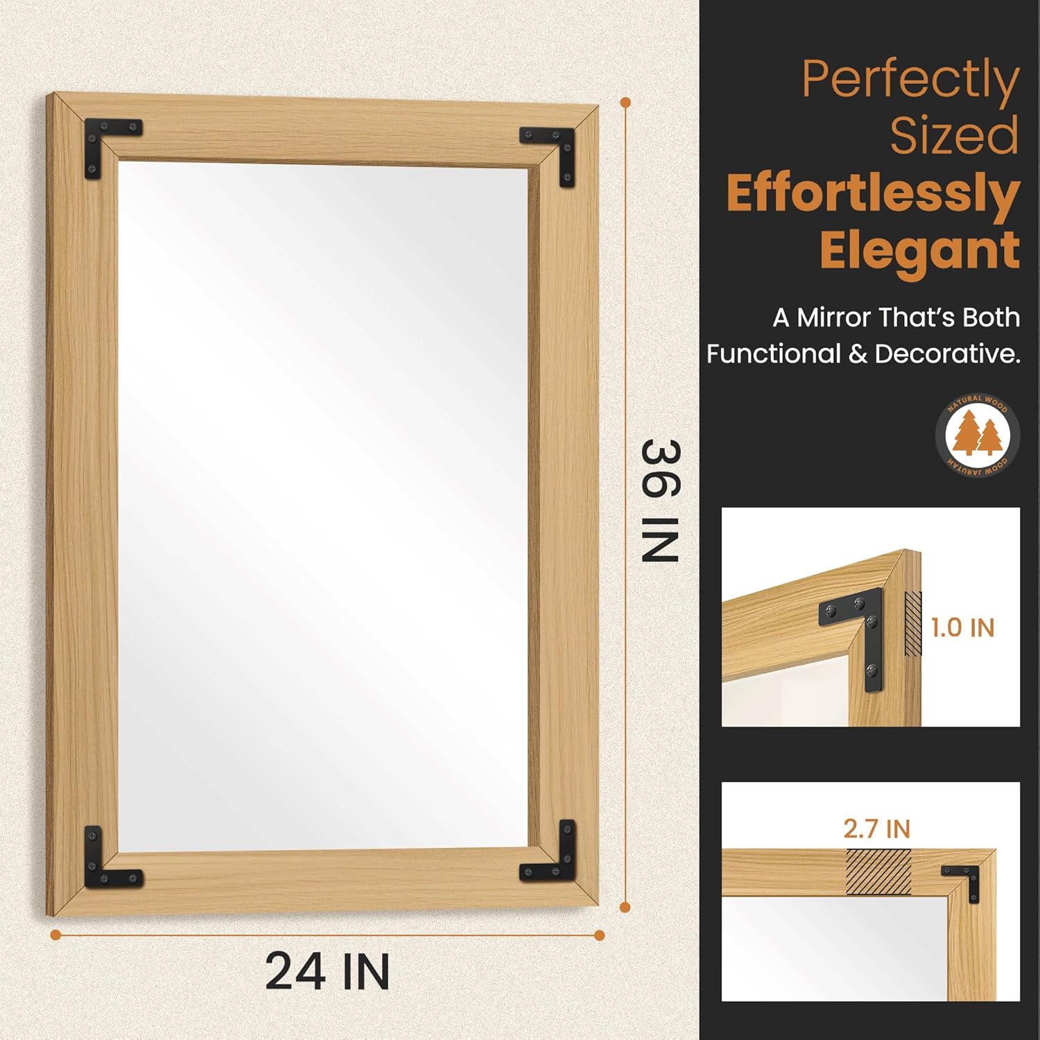 Bathroom Mirror for Wall with Wooden Frame, 36"x24" Solid Wood Vanity Mirror for Farmhouse, Bathroom, Bedroom Decor, Vertical or Horizontal Hanging(Natural)