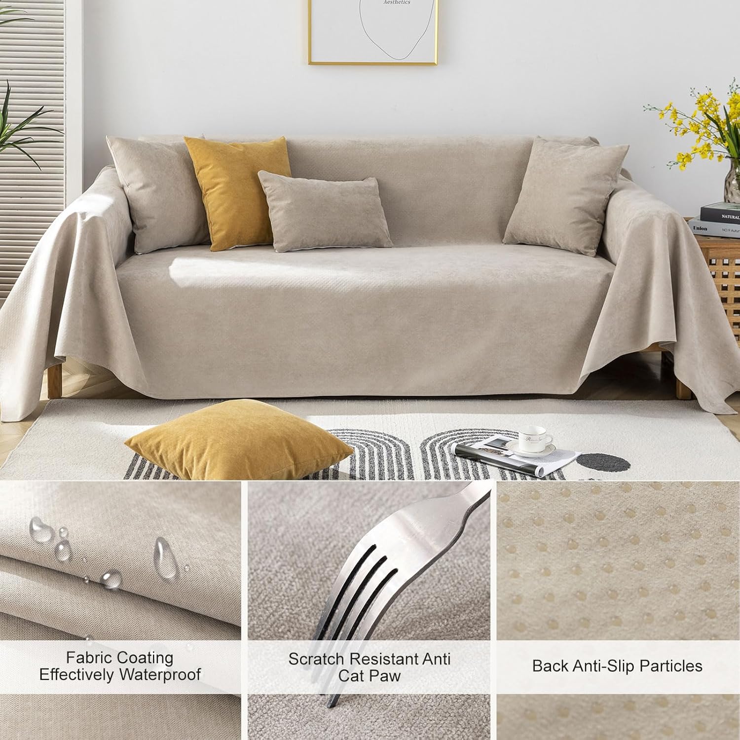 STACYPIK Waterproof Anti-Cat Scratch Couch Covers, Beige Sofa Covers for Dogs, Non-Slip Couch Covers for 2 Cushion Couch, Washable Love Seat for Sectional, Furniture Protector Sofa Slipcover-71X90IIN