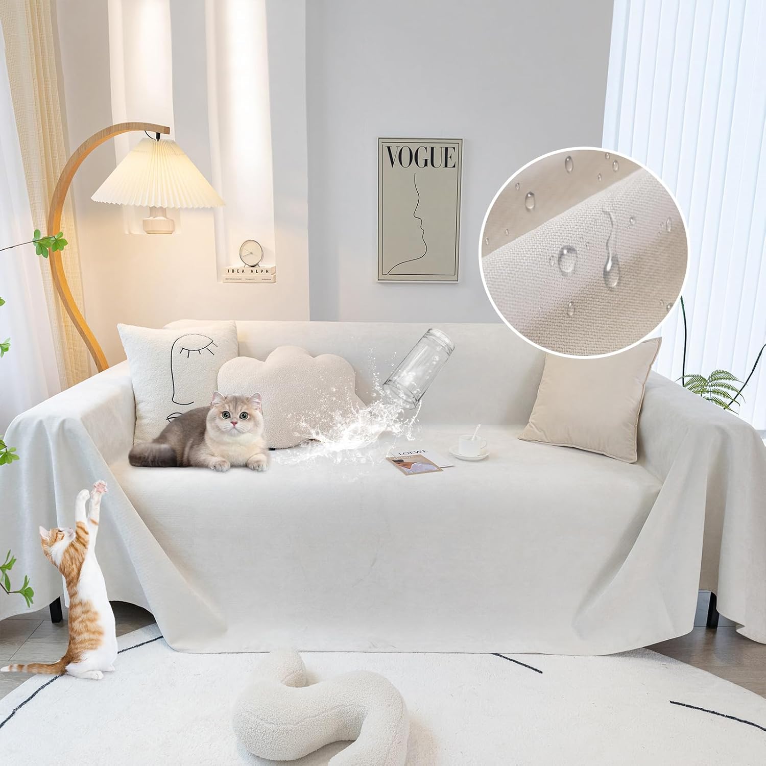 STACYPIK Waterproof Ivory White Sofa Covers Couch Cover for Pets, Anti-Cat Scratch Furniture Protector or 2 Cushion Couch, Washable Jacquard Recliner Loveseat Sofa Slipcover for Pets, Kids-71X71IN