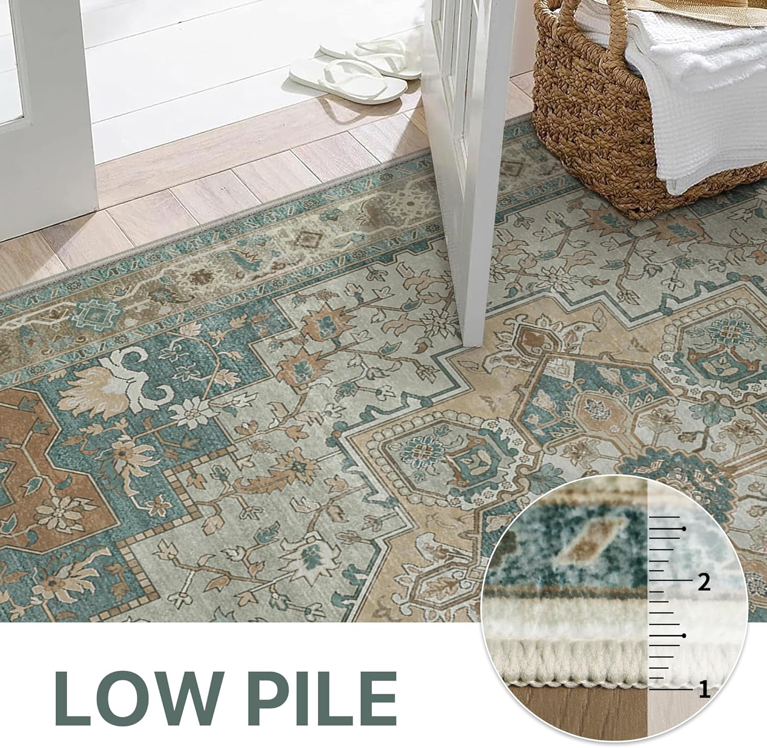 - Machine Washable: Our boho area rug is designed for convenience and fits seamlessly into any lifestyle. Machine wash with cold water on gentle cycle (not to add bleach), air dry or dry on air-only cycle without heat. For daily upkeep, use a vacuum cleaner or a quick wipe. Its VERY THIN design allows for easy removal of pet hair and other debris.